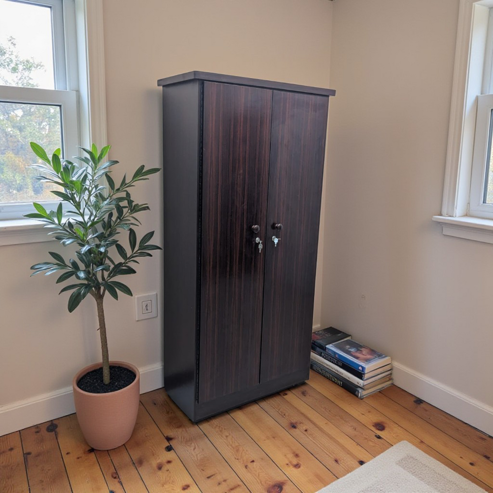 This elegant 2 door almirah is perfect for bedrooms, offices, or guest rooms. Designed with a sleek dark finish and ample internal storage, it offers both style and functionality.