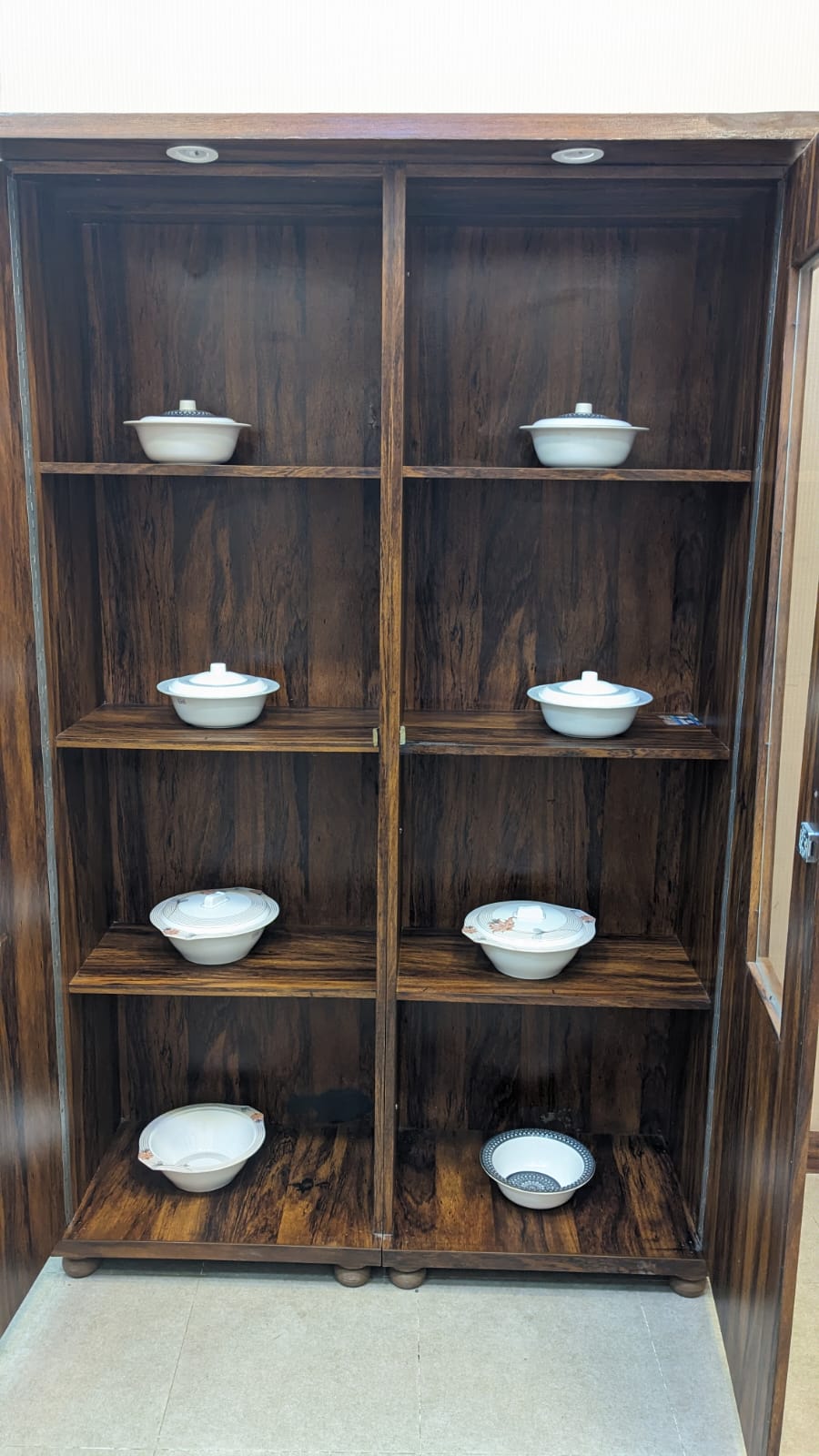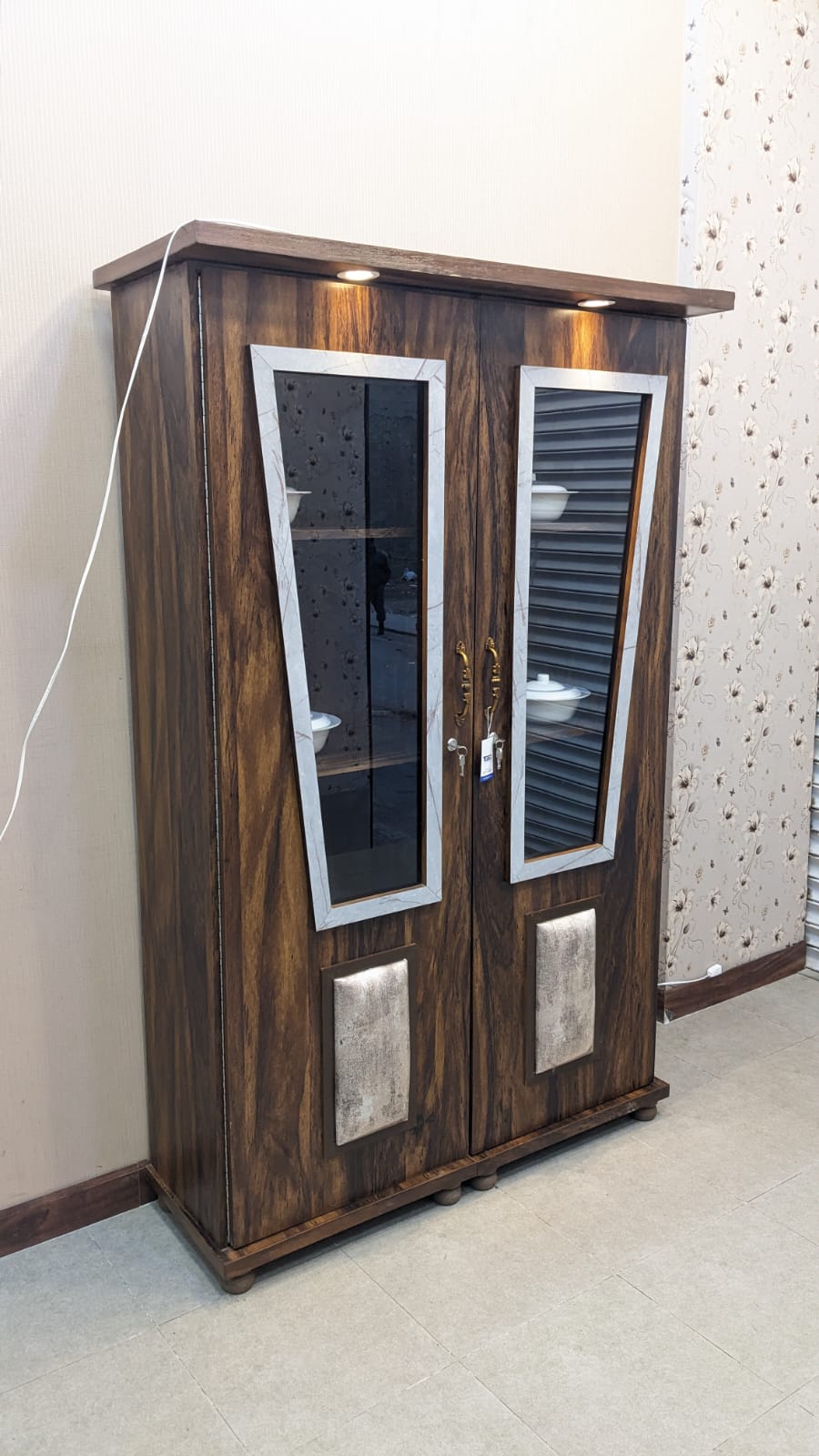 Finished in rich wood-grain lamination, this piece works perfectly as a crockery unit, room divider, or display cabinet.