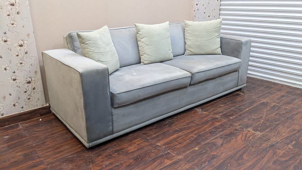 A sleek and cozy 3 seater sofa upholstered in soft velvet fabric, perfect for everyday comfort.