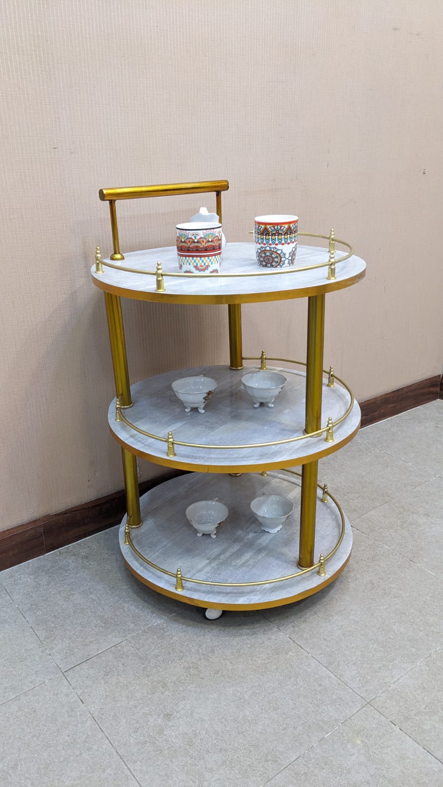 Add effortless elegance to your hosting with this stylish 3-Tier Tea Trolley, designed to serve in style and move with ease.