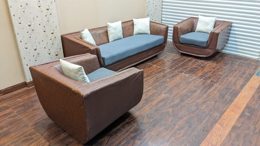 Upholstered in rich leatherette and jute fabric, this elegant sofa set combines comfort with modern design.