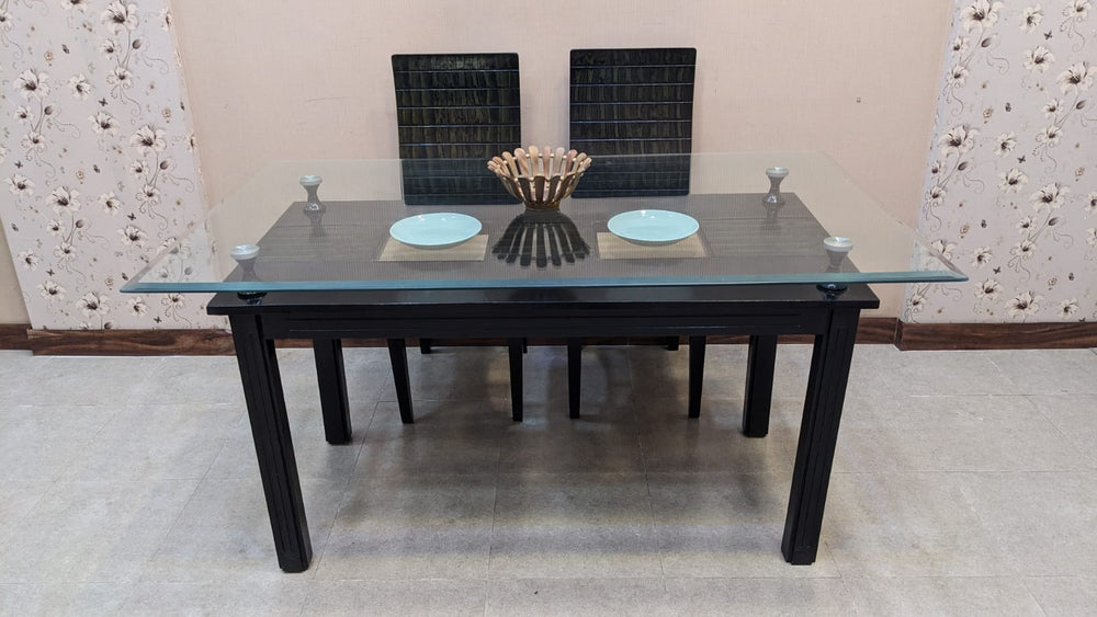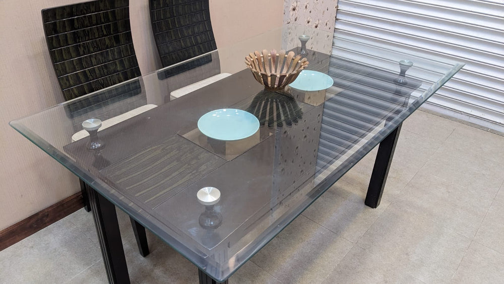 ✨Stylish 6 Seater Dining Table Set – Premium Glass & Velvet Finish ✨