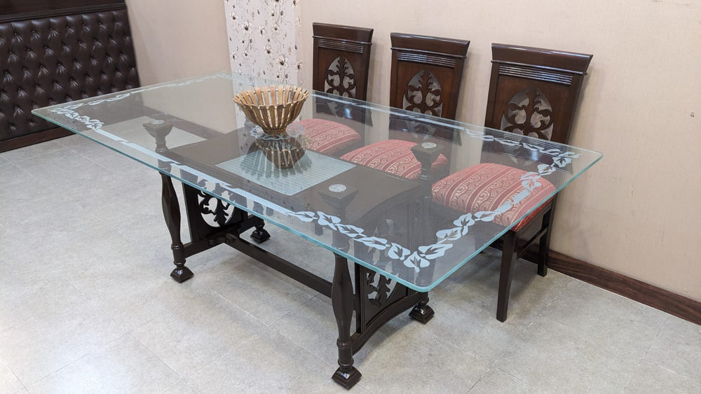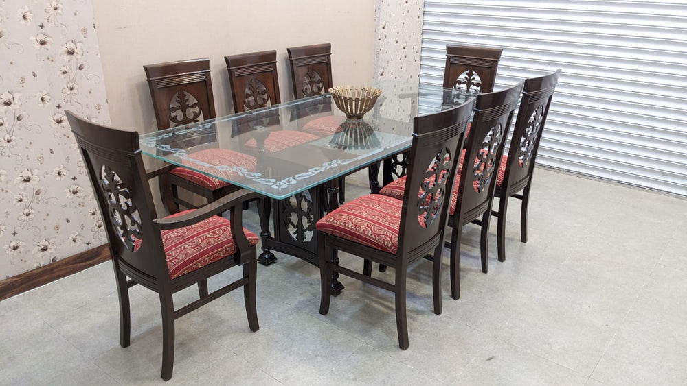 Make a statement in your dining space with this elegant and spacious 8 seater dining set, crafted from Sheesham wood and ply finished with timeless detailing.