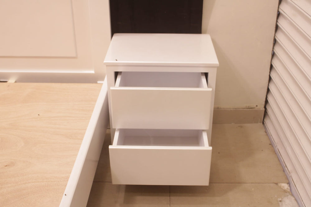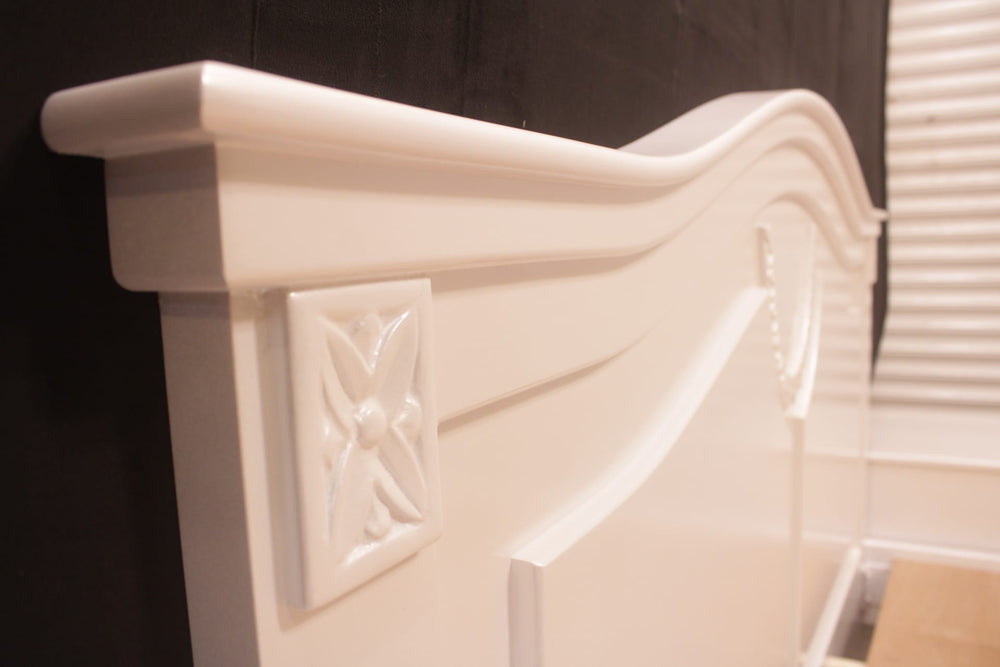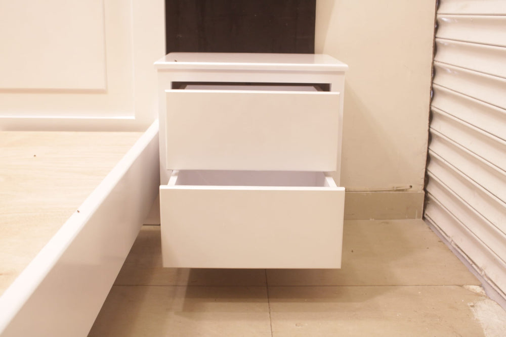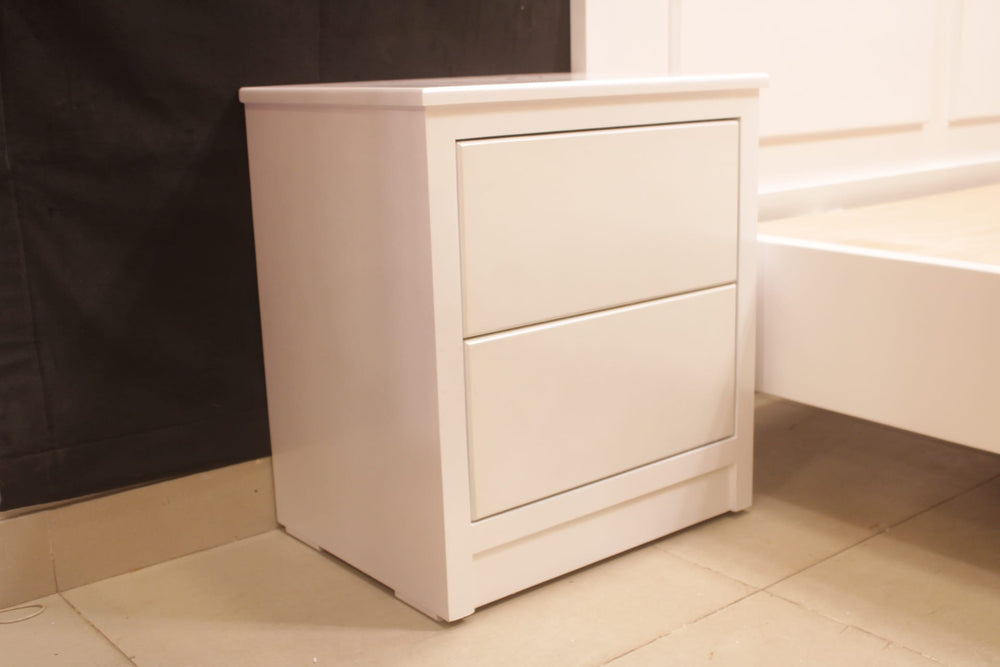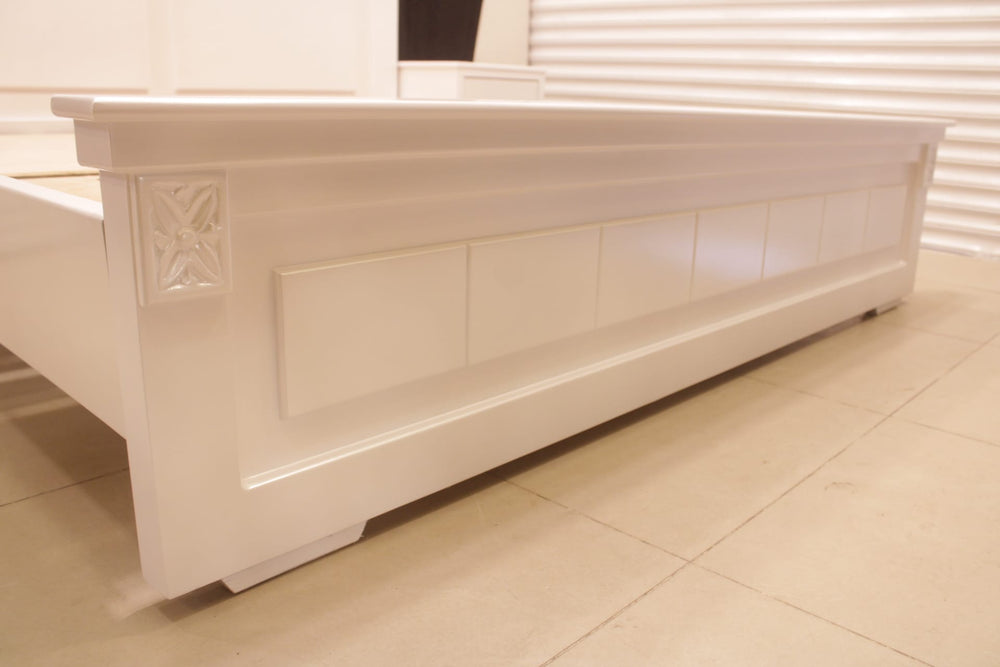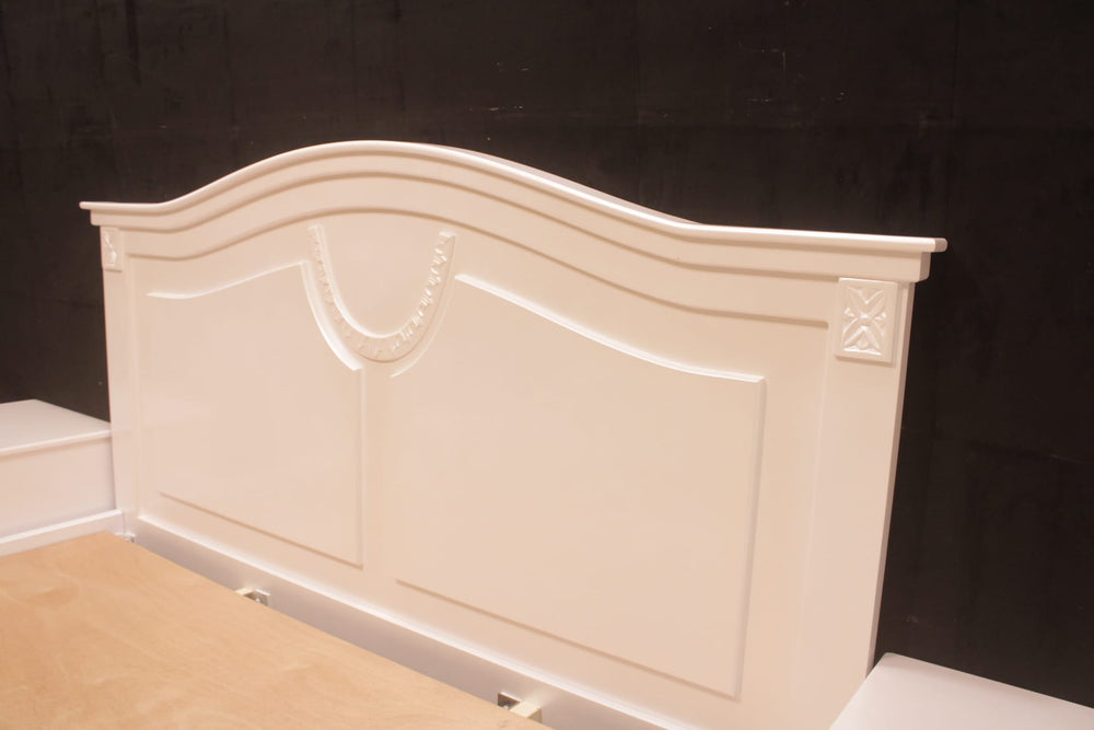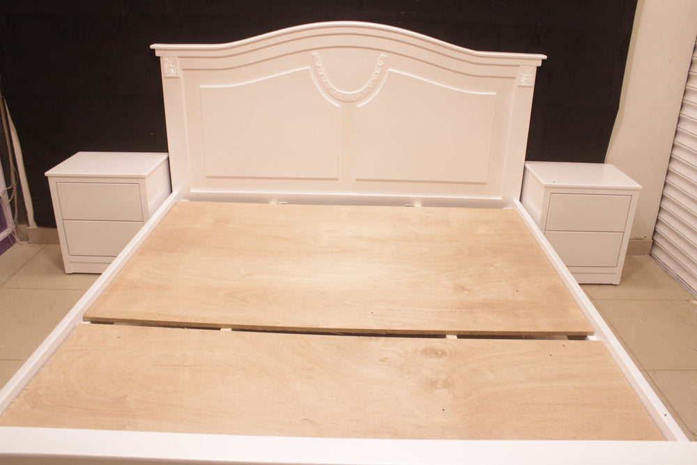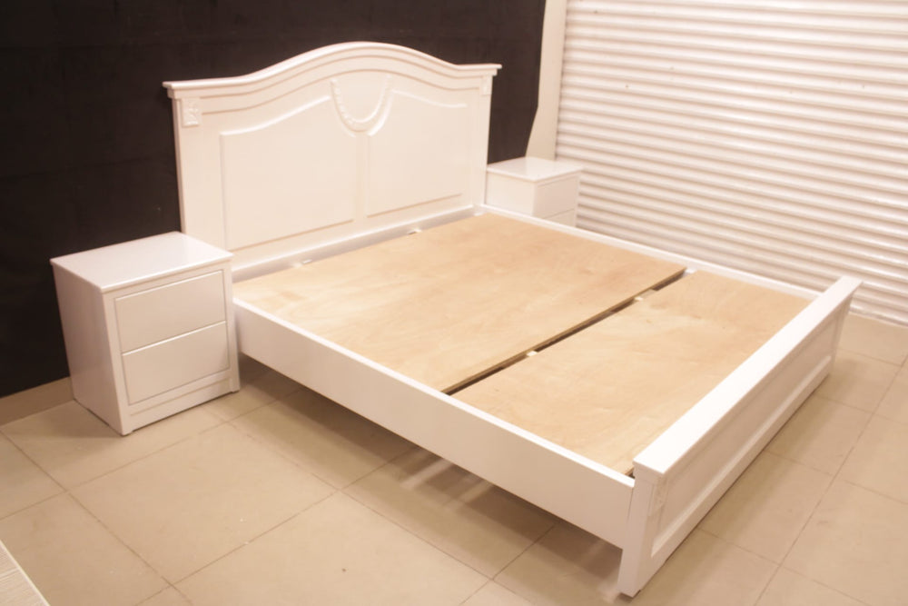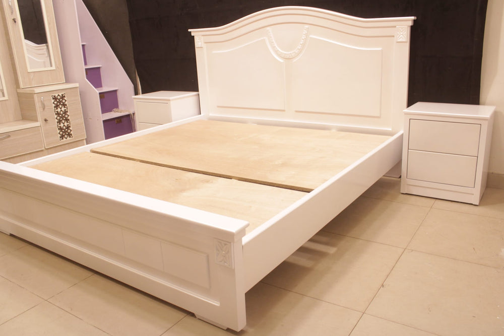 Tgsc Design Brand New Luxurious and Classy Bed With 2 Side Tables, Dressing Table 3 Door Almirah In 3 Separate Pieces In Pearl White Deco Paint.