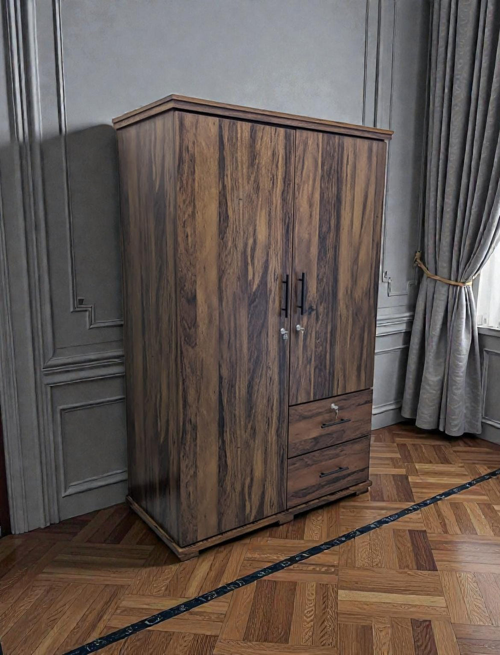 Upgrade your bedroom storage with this brand new 2-door almirah by DivineCrafts, crafted in high-quality lamination material with a rich wood-grain finish that looks premium and lasts long.