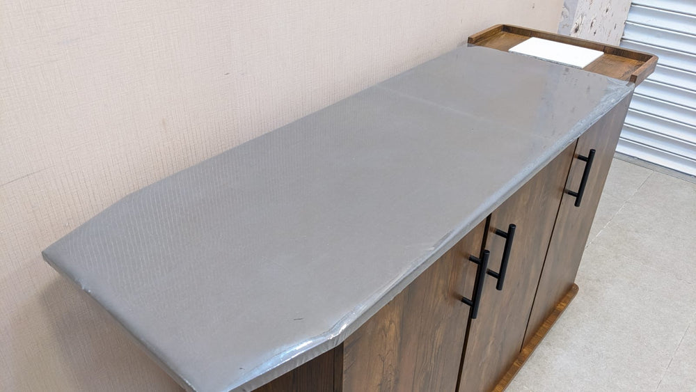 A stylish and functional storage table featuring a modern plain-style front with a durable lamination material finish.