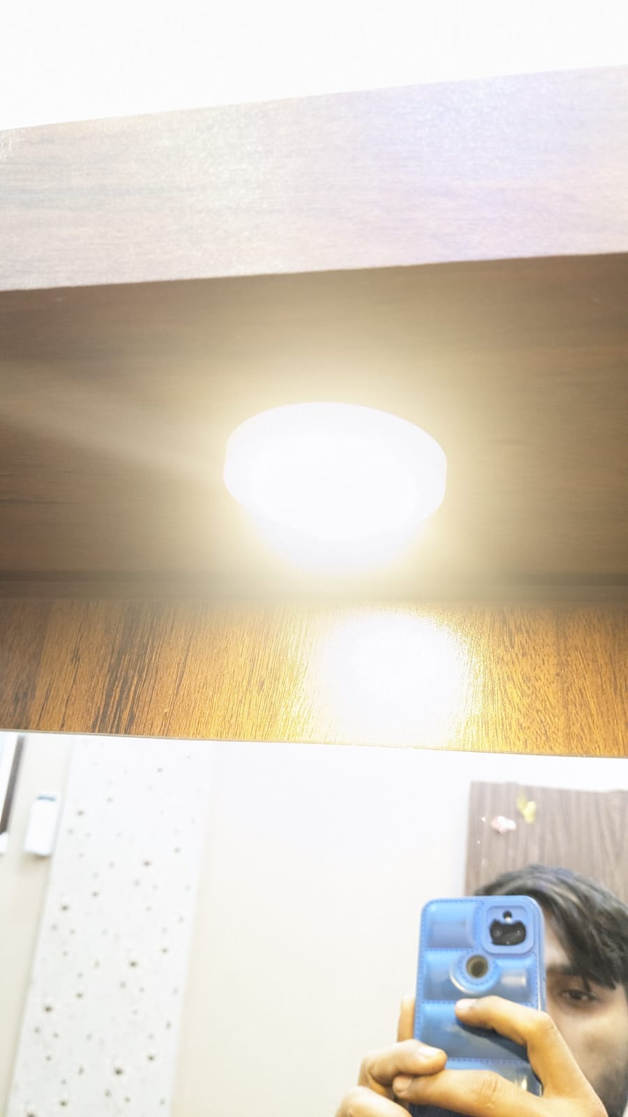 Sleek full-length mirror with top light section