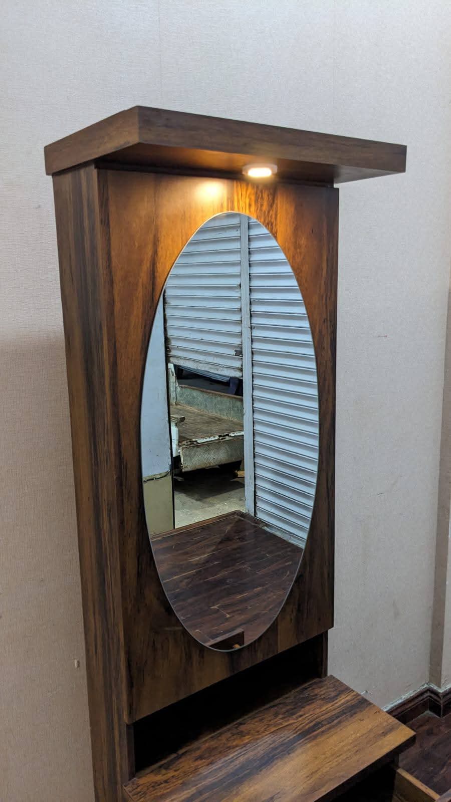 🔥 Free Delivery KHI To Hyderabad City 🔥 DivineCrafts Designs Brand New Stylish Space Saver Dressing Table with Built In Storage Behind The Mirror For Keeping Makeup Perfumes Etc. The Dresser Has 2 Large Spacious Drawers In High Quality Lamination Material.