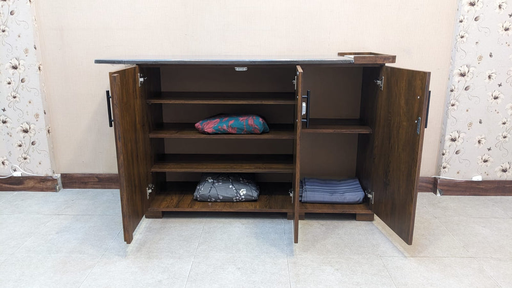 Spacious cabinet storage for folded clothes & ironing essentials