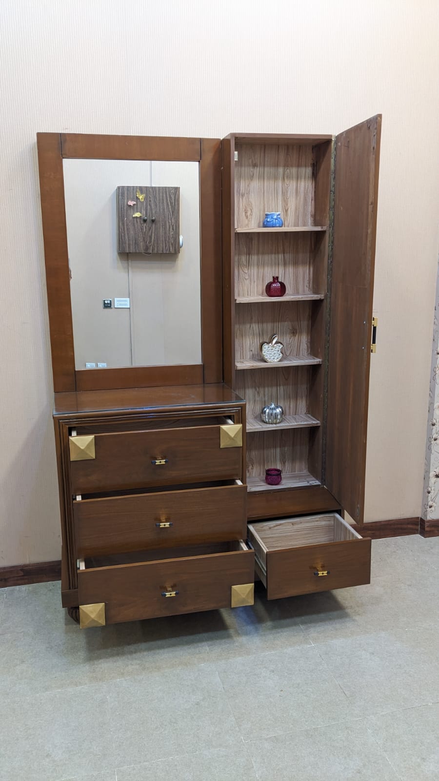 Dressing Table with Full-Length Mirror & Storage Cabinet, glass top