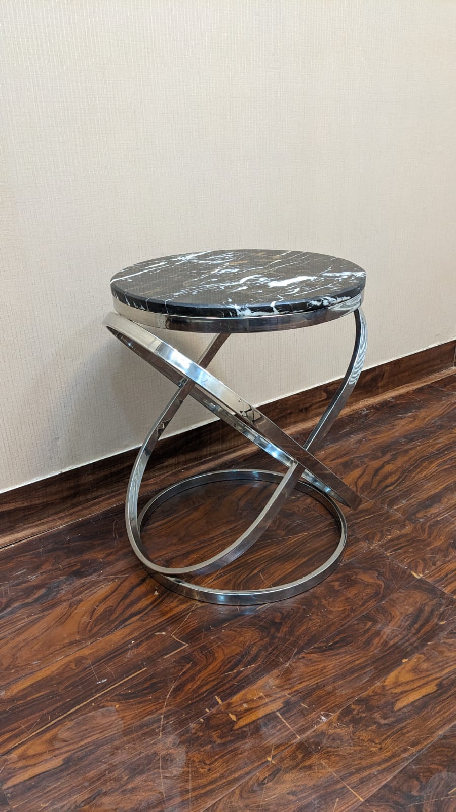 Add a touch of luxury to your living space with this stunning corner table featuring a sleek black marble top and a stylish stainless steel cross-loop base.