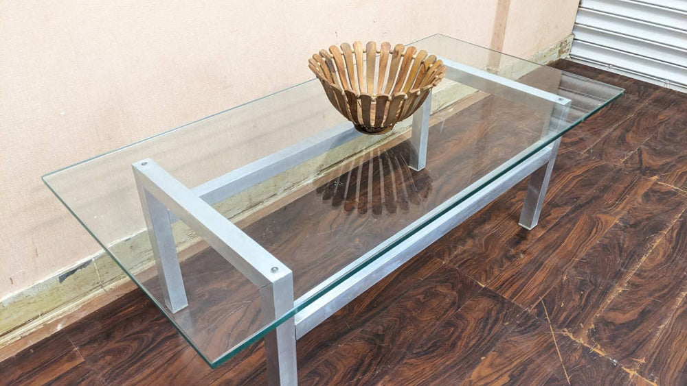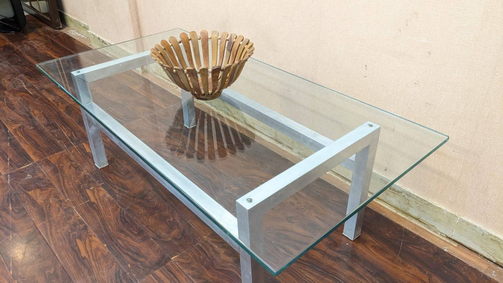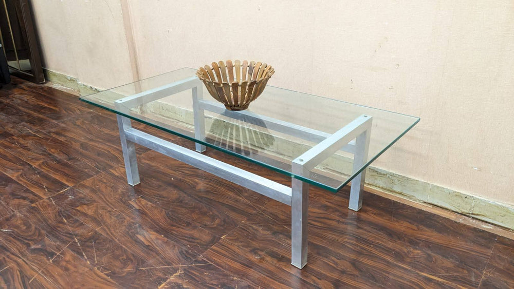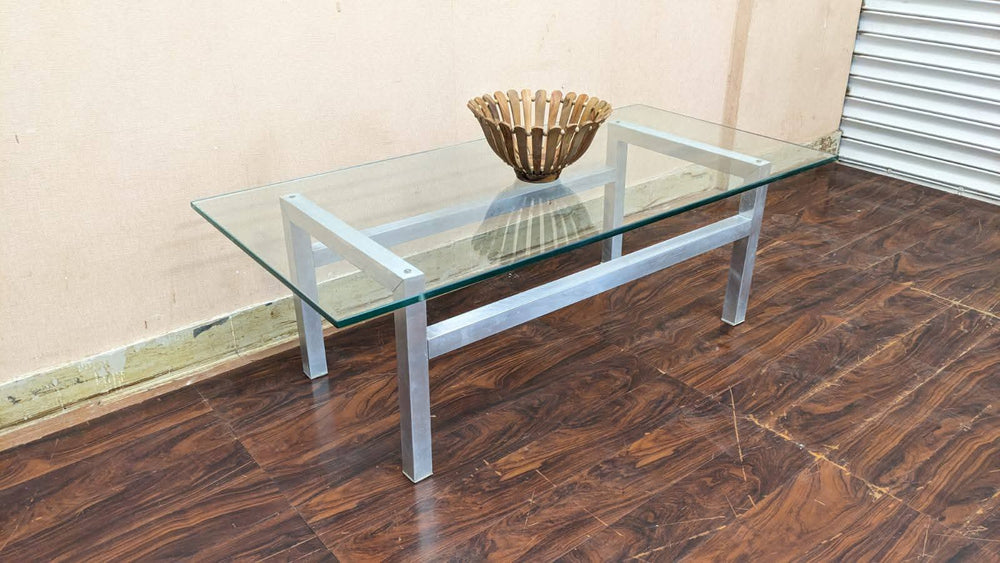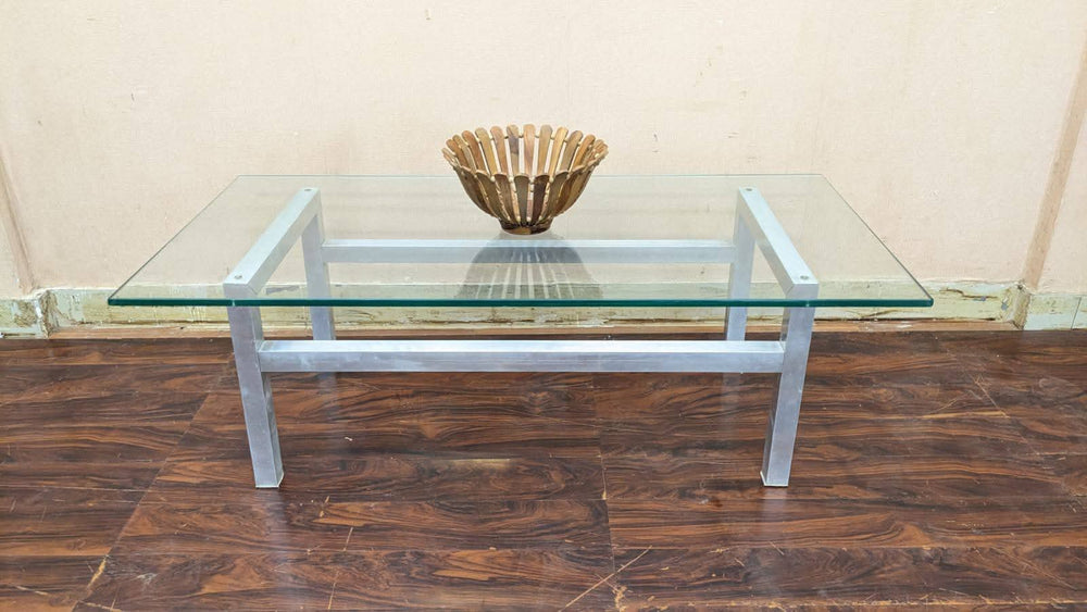 Add a touch of elegance to your living room with this stylish glass-top center table featuring a sturdy aluminum frame.