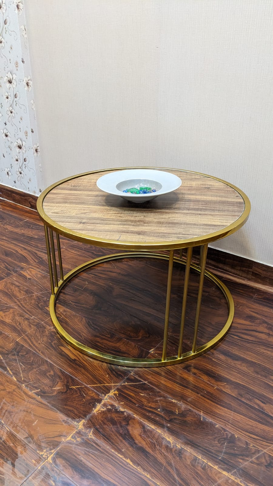 Featuring a gold-toned stainless steel base that exudes sophistication, paired with an Al Noor Lasani tactile top — rich in texture and warmth. Its minimalist circular design brings balance and harmony to any living space.