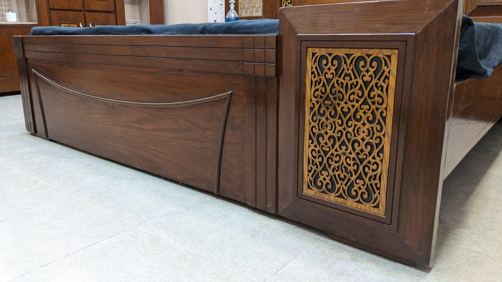Transform your room with this beautifully crafted bedroom set featuring elegant Jafri-style carving work.