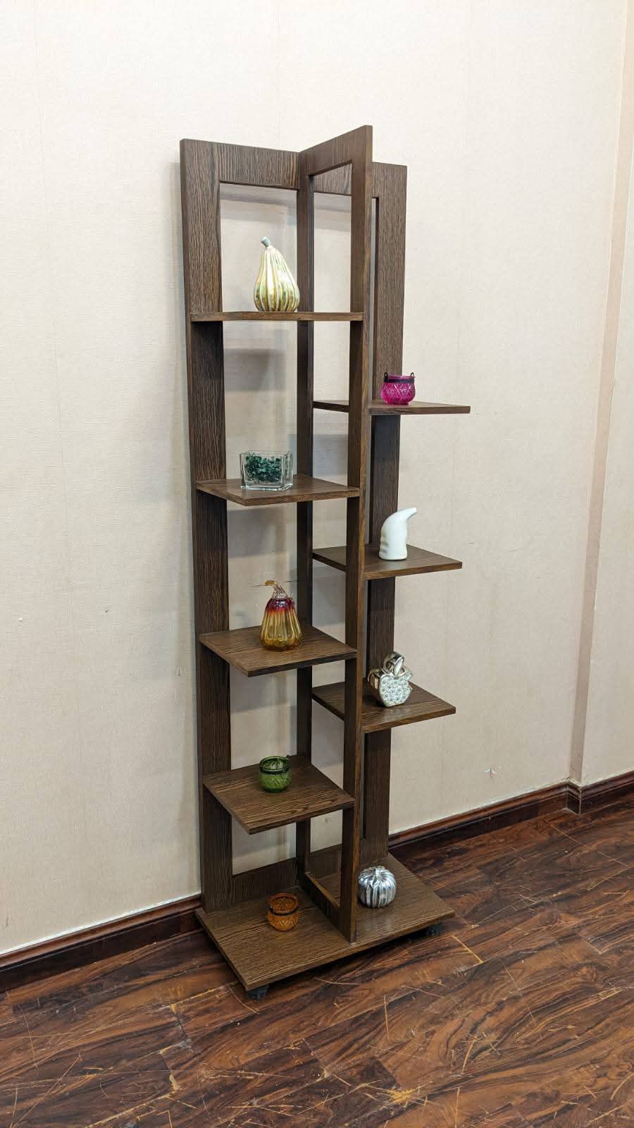 Perfect for living rooms, offices, or showrooms — its unique design with open shelves adds a modern touch while giving ample space for your decorative pieces, books, or collectibles.