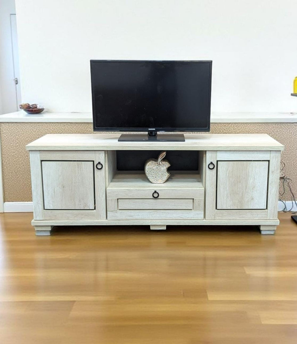 🗄️ Storage: 2 side cabinets + 1 drawer + open shelf