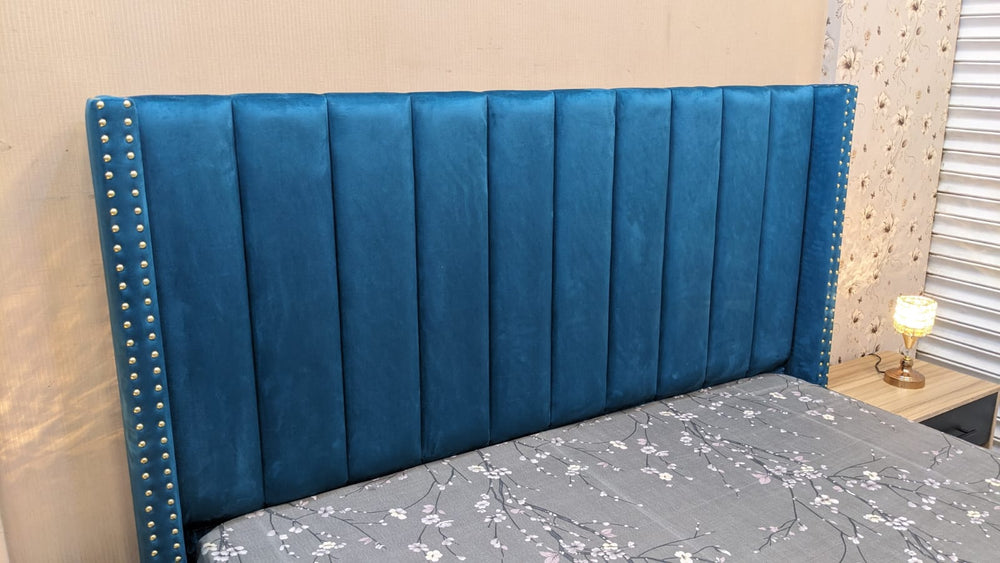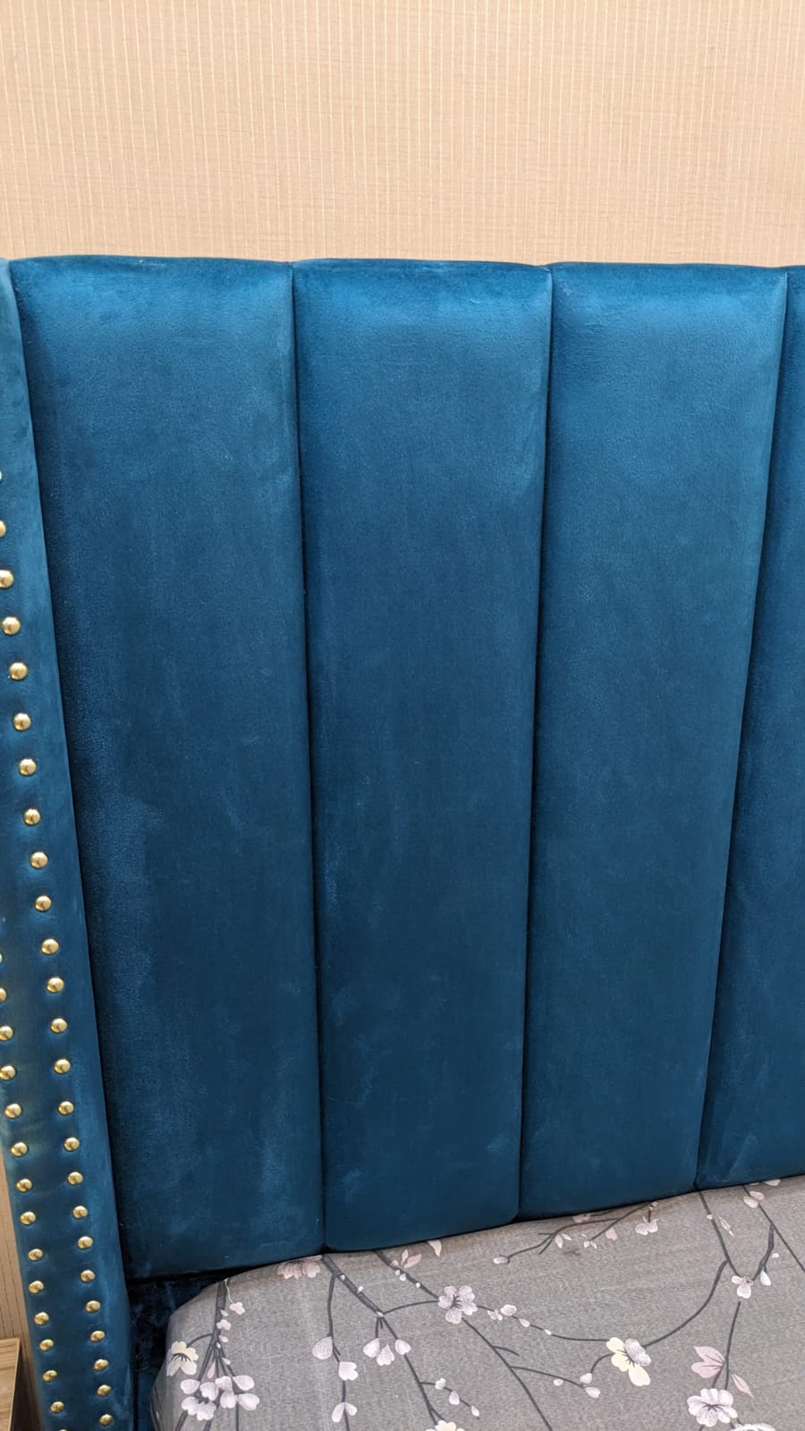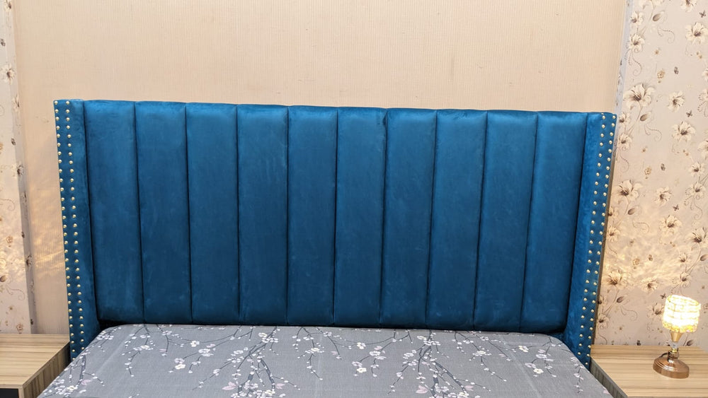 The beautiful contrast of velvet upholstery with laminated furniture gives a rich, modern hotel-style look — perfect for master bedrooms.