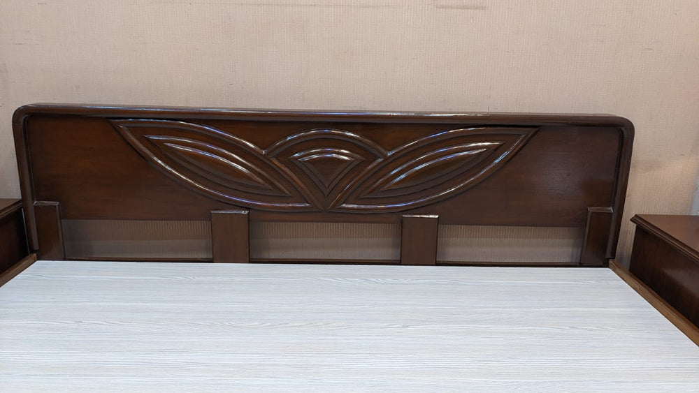 The carved headboard and footboard design add a classy statement to your room, while the spacious side tables provide practical storage for everyday essentials.