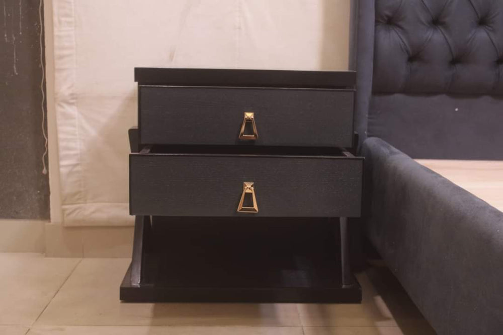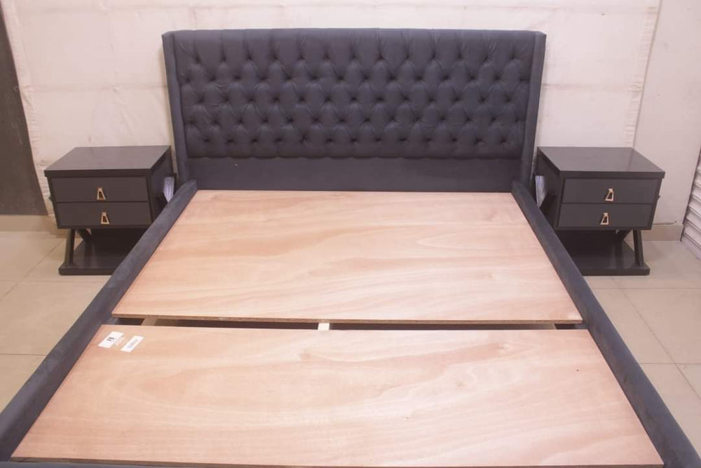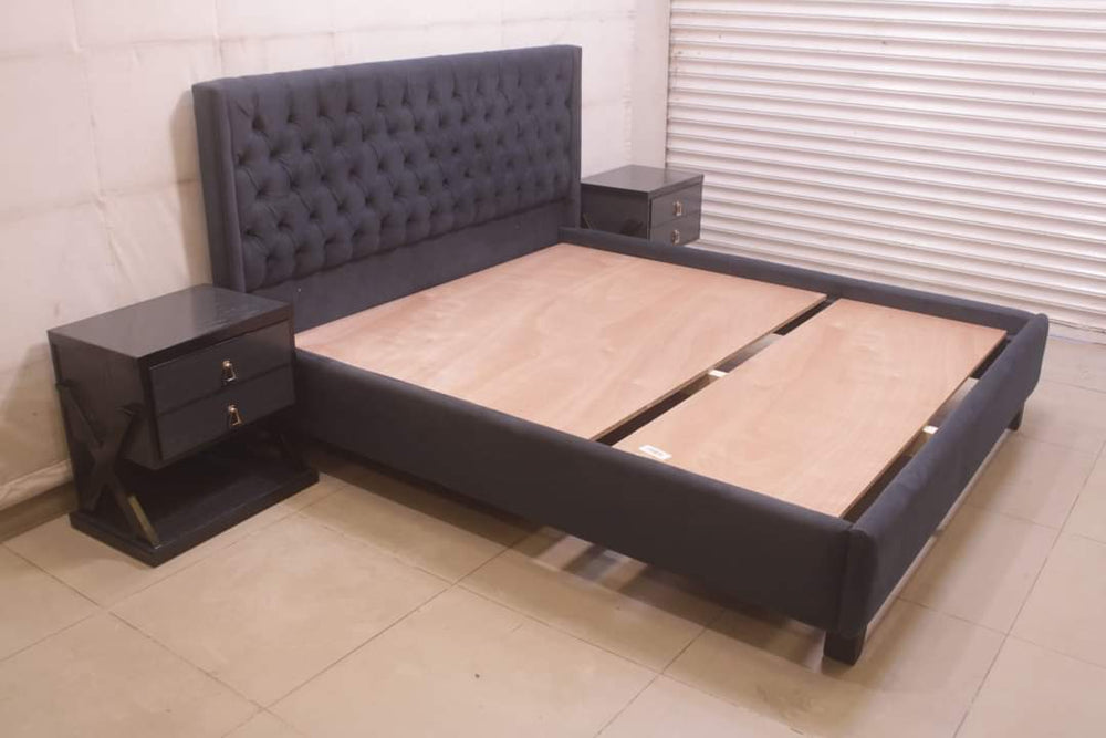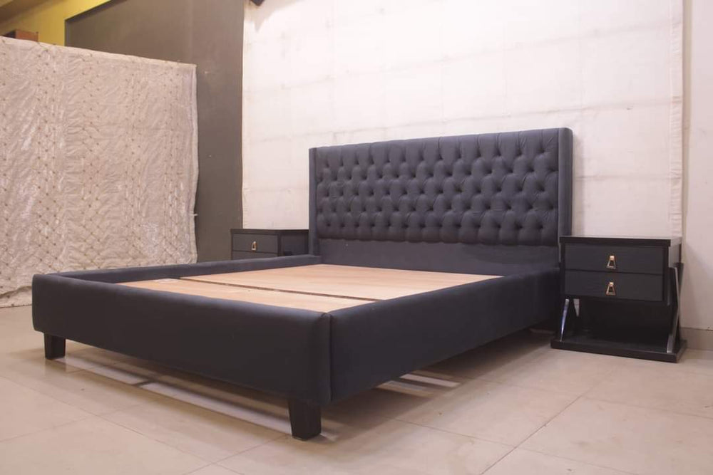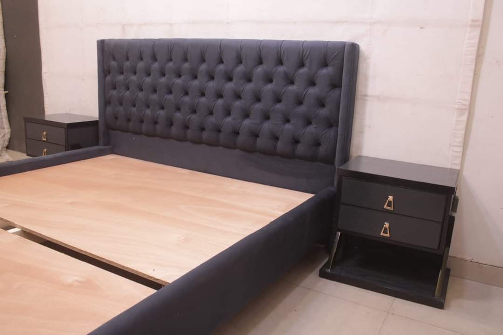 Tgsc Designs Brand New Arrival Erico Chesterfield Design Full Cushioned King Size Bed With 2 Side Tables