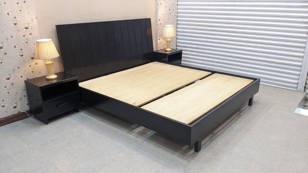 Upgrade your bedroom with this stylish Habitt King Size Bed featuring a sleek panel headboard and matching 2 side tables. The deep black finish gives a bold, premium look that blends beautifully with modern interiors.