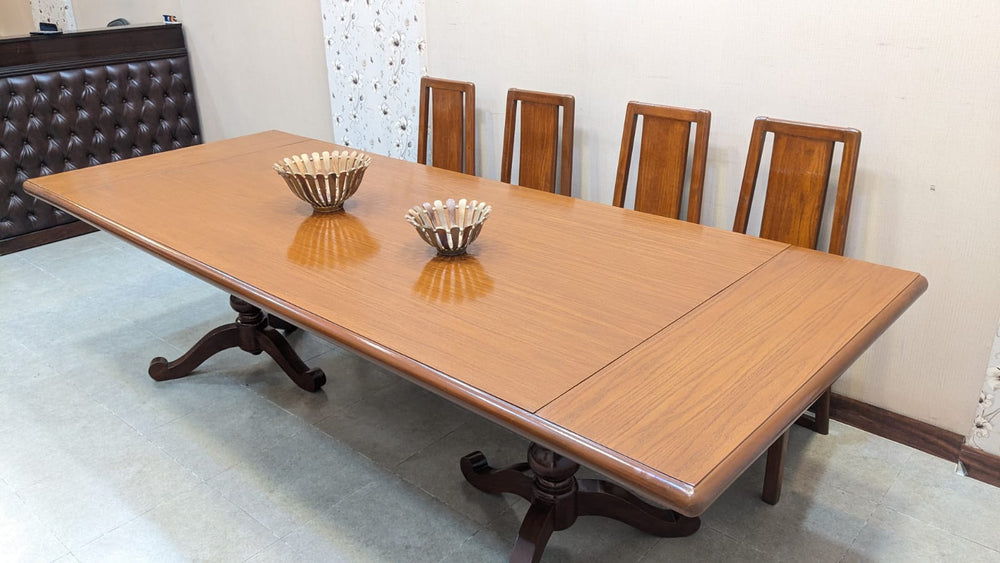 This imported dining table offers a perfect balance of strength, comfort, and timeless design. The solid base ensures stability, while the generously cushioned chairs provide long-lasting comfort for everyday use and special gatherings alike.