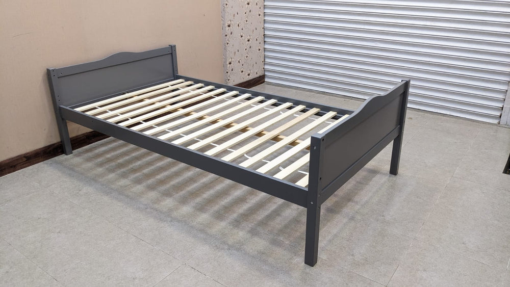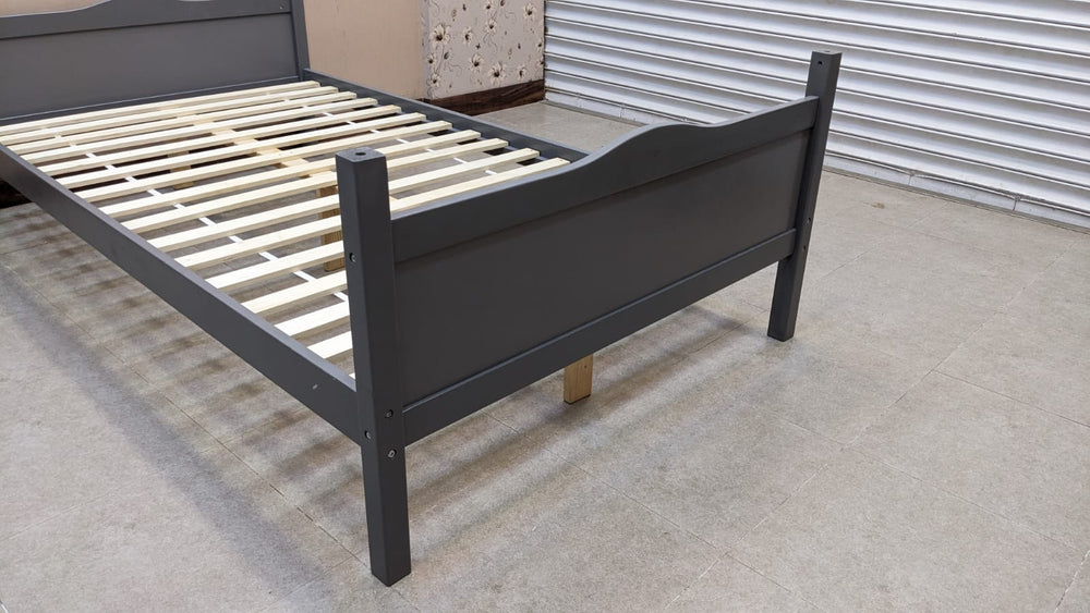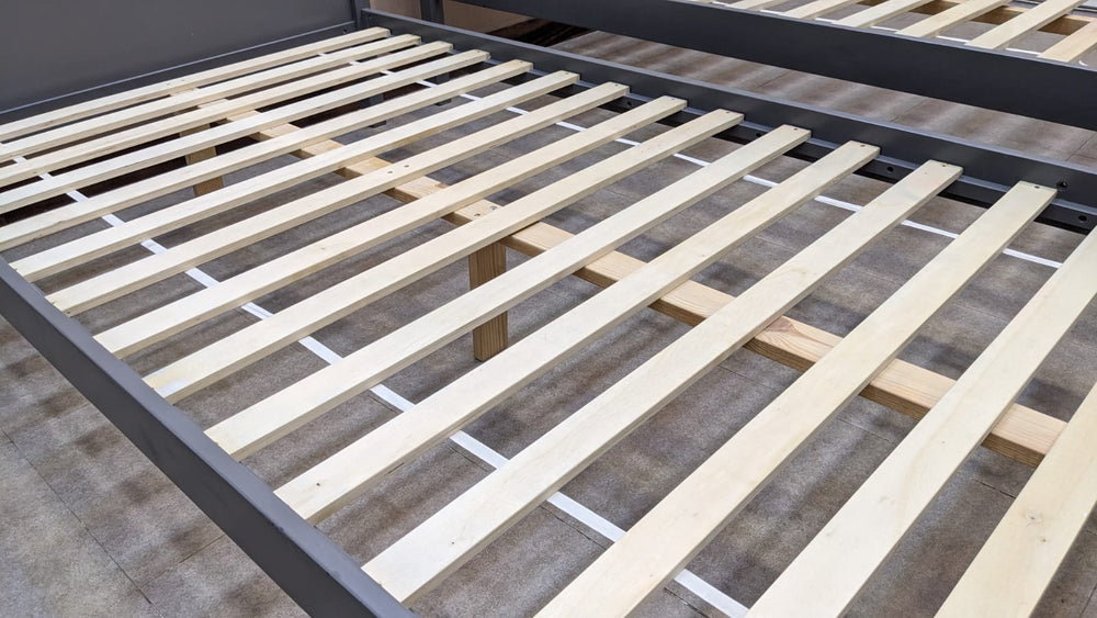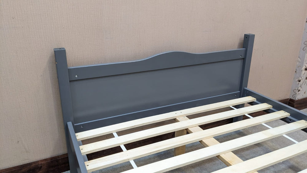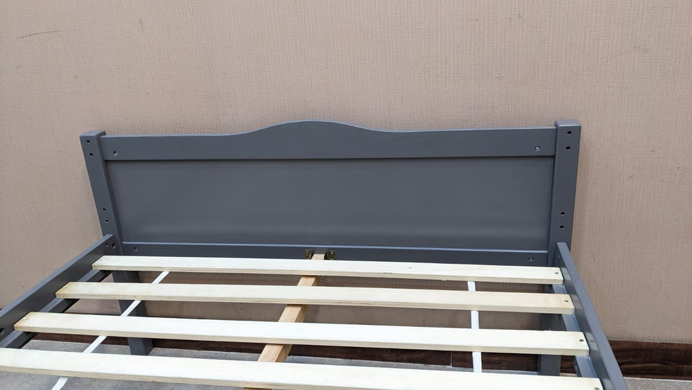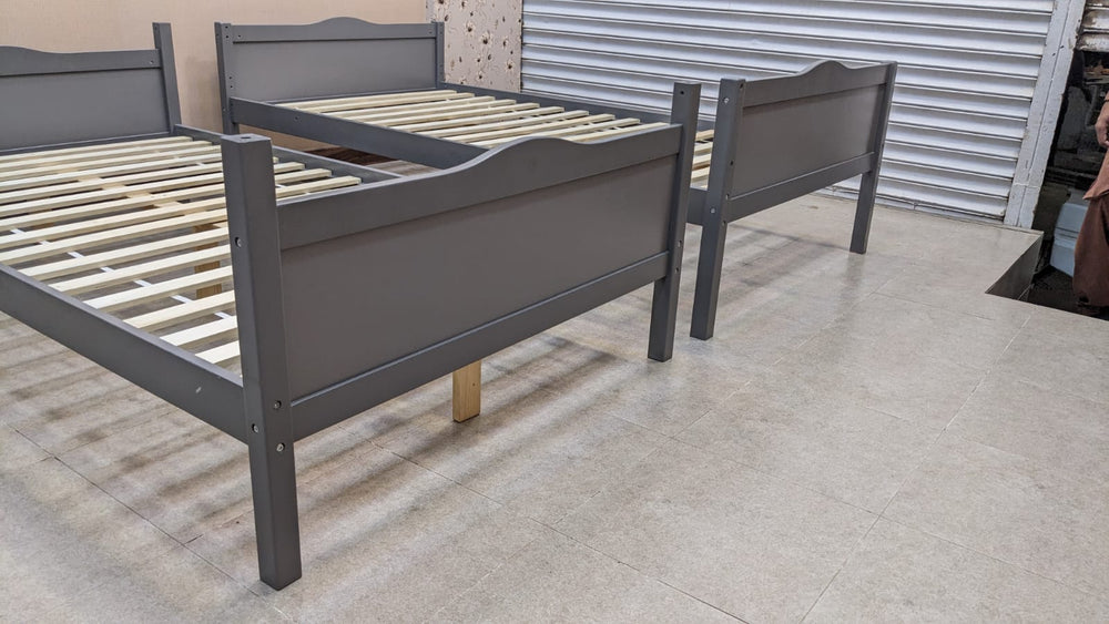 Both beds come in modern grey finish with strong slat support — only a minor difference in height & slight variation in headboard & footboard design, but aesthetically matching as a set.