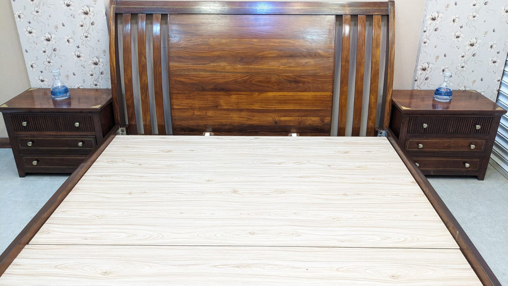 Imported Solid Sheesham Wood Super King Size Bed with 2 Matching Side Tables