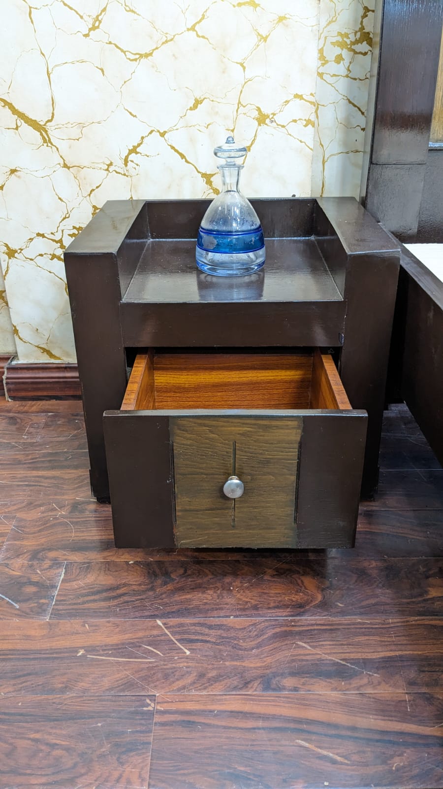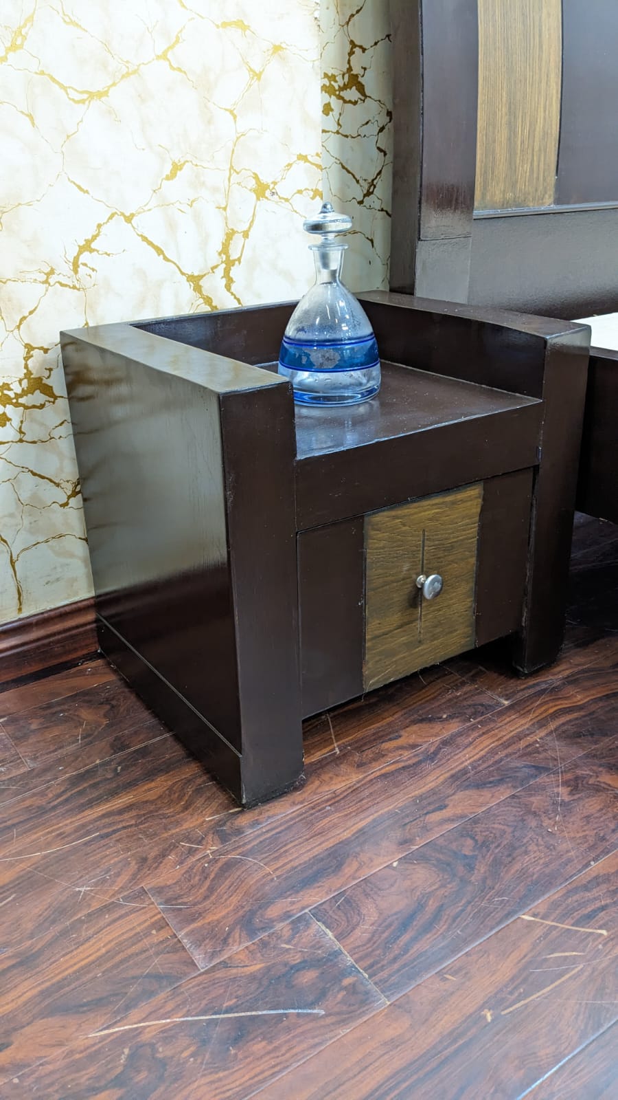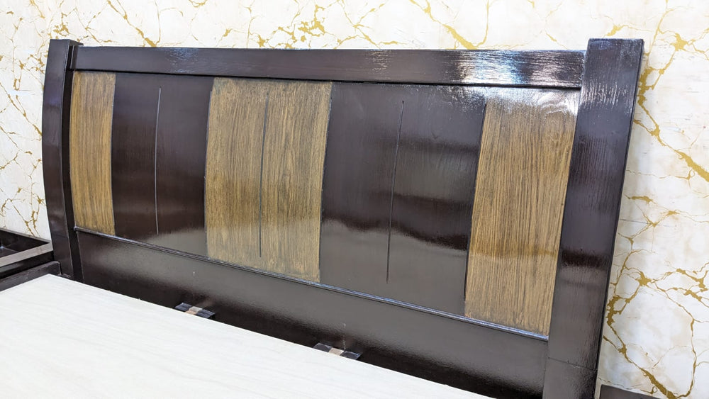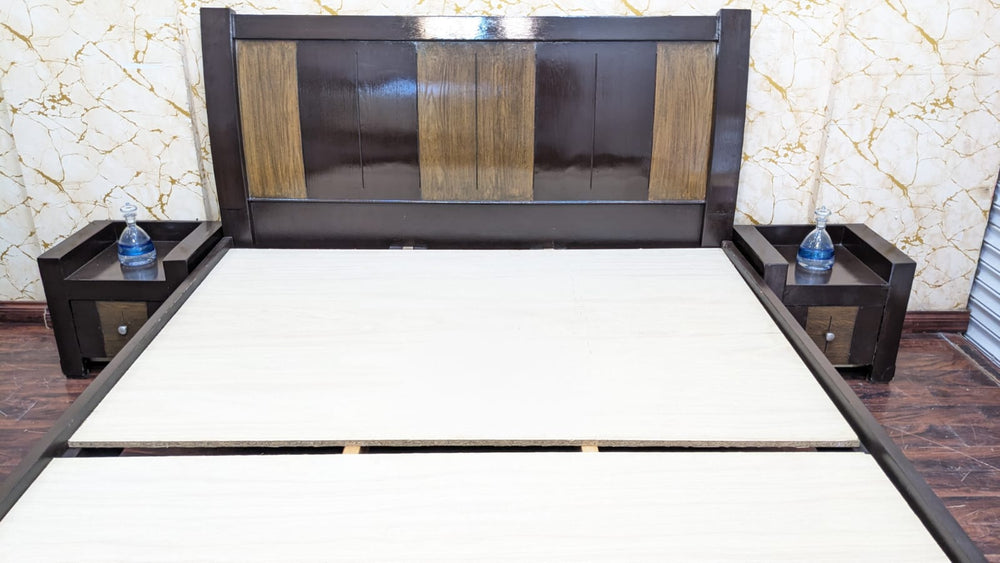 Upgrade your bedroom with this elegant King Size Bed Set, crafted in rich dark polish with warm wood grain panels for a stylish contrast.