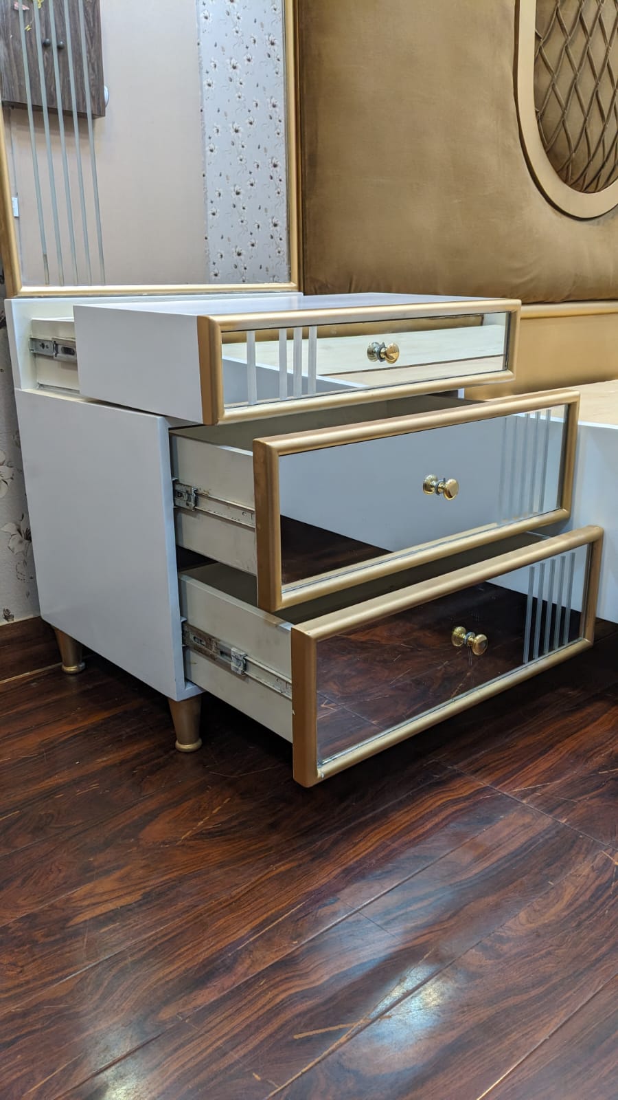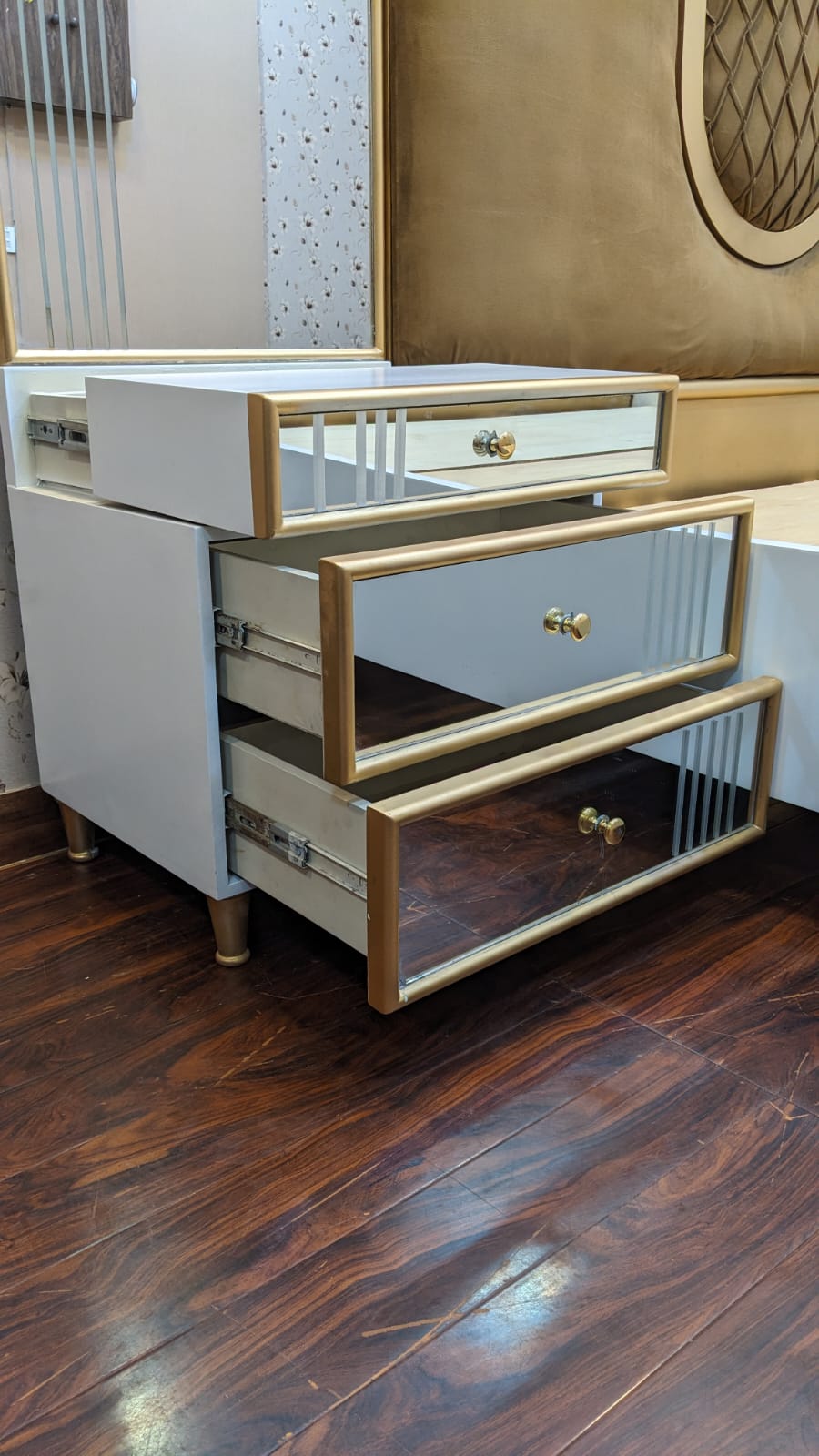 Includes King Size Bed, 2 Side Tables & Dressing Table with Stool