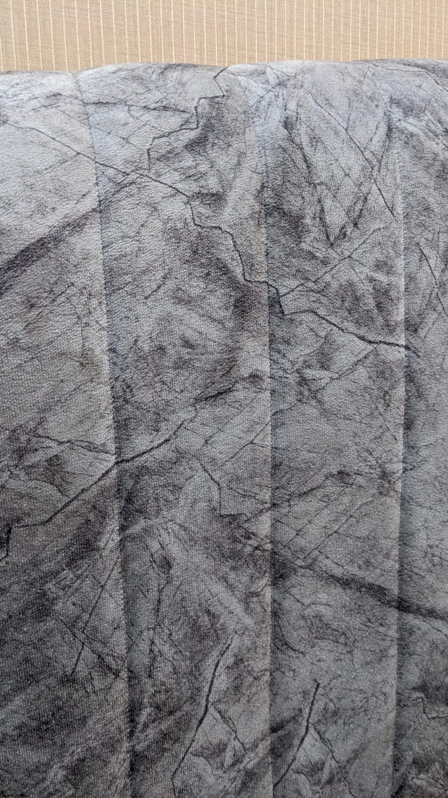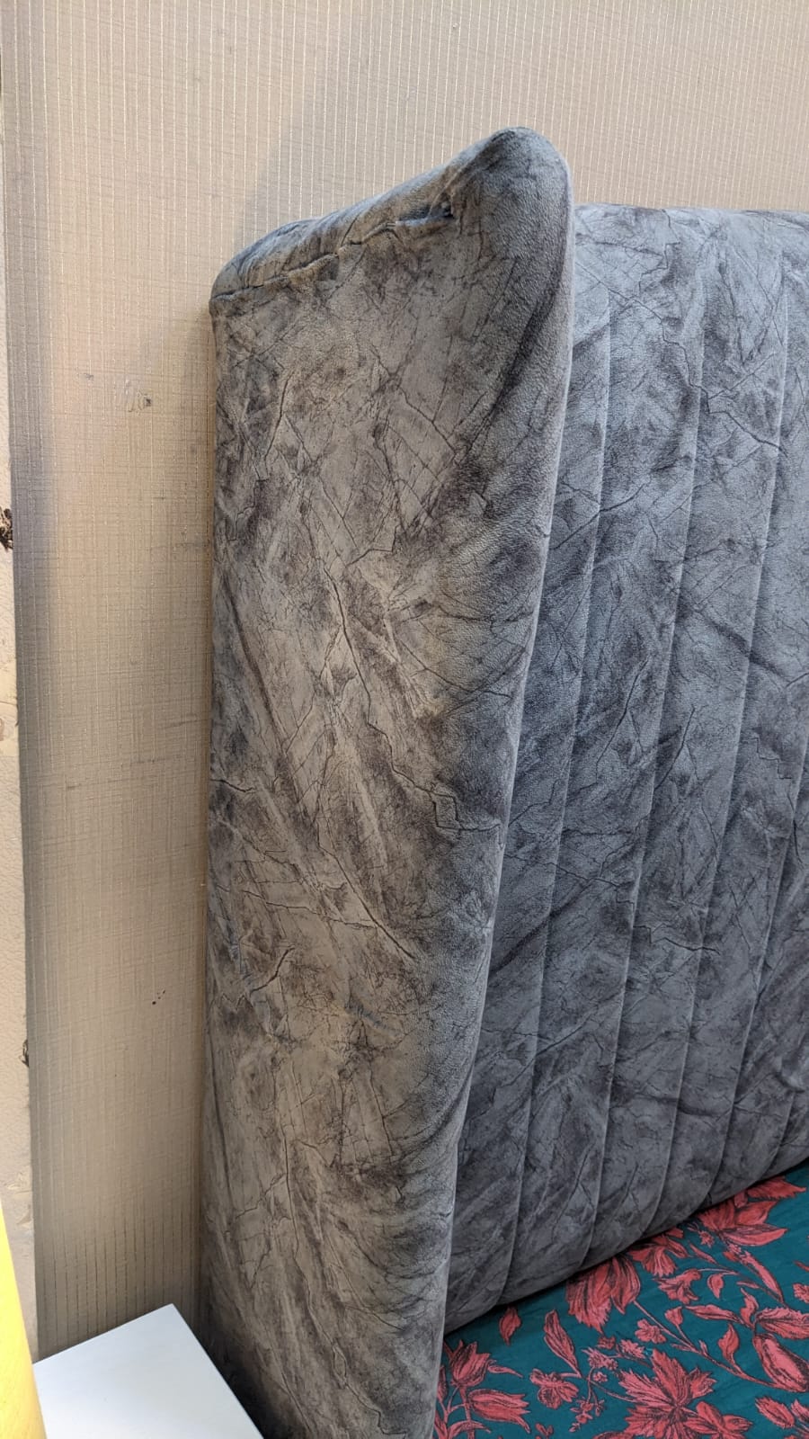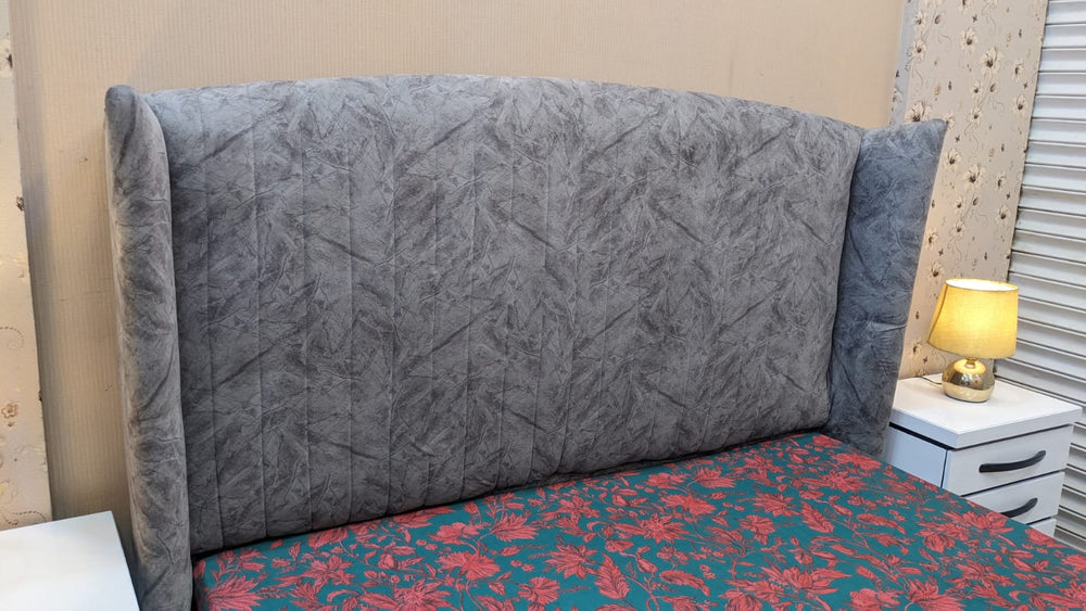 The soft grey velvet headboard paired with the clean chalk finish creates a calm, premium bedroom vibe β ideal for Ramadan & Eid home refresh or a bedroom upgrade.