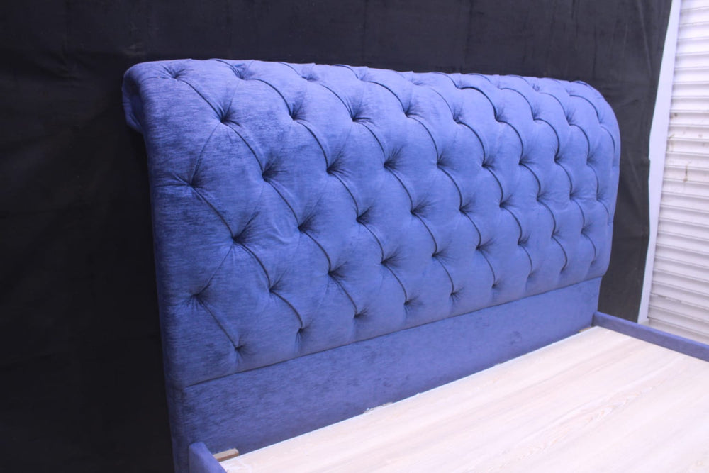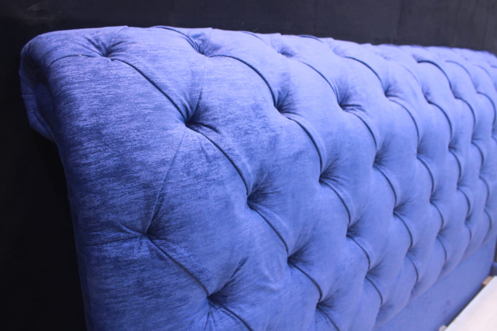 Tgsc Designs Brand New Milano bed in Chesterfield design with 2 side tables and dressing table. High quality material and fabric has been used throughout the making of this bed.