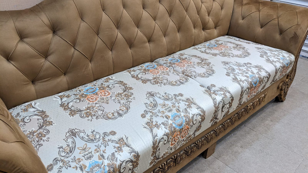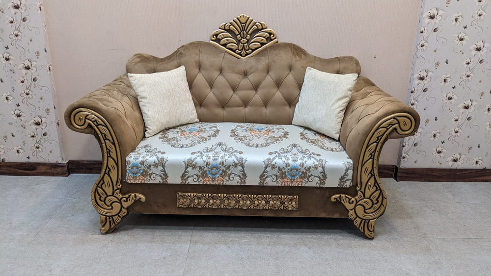 This sofa set blends classic craftsmanship with luxurious comfort, making it ideal for formal living rooms, lounges, or drawing rooms that demand elegance.