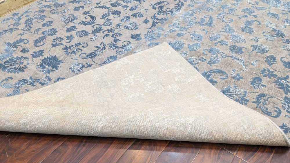 Add charm to your space with this beautiful Machine Made carpet featuring a soft grey base and soothing blue floral design. Perfect for living rooms, bedrooms, or offices — it brings both comfort and class!
