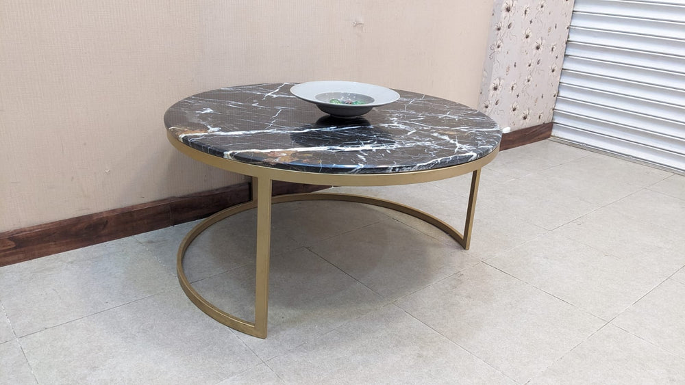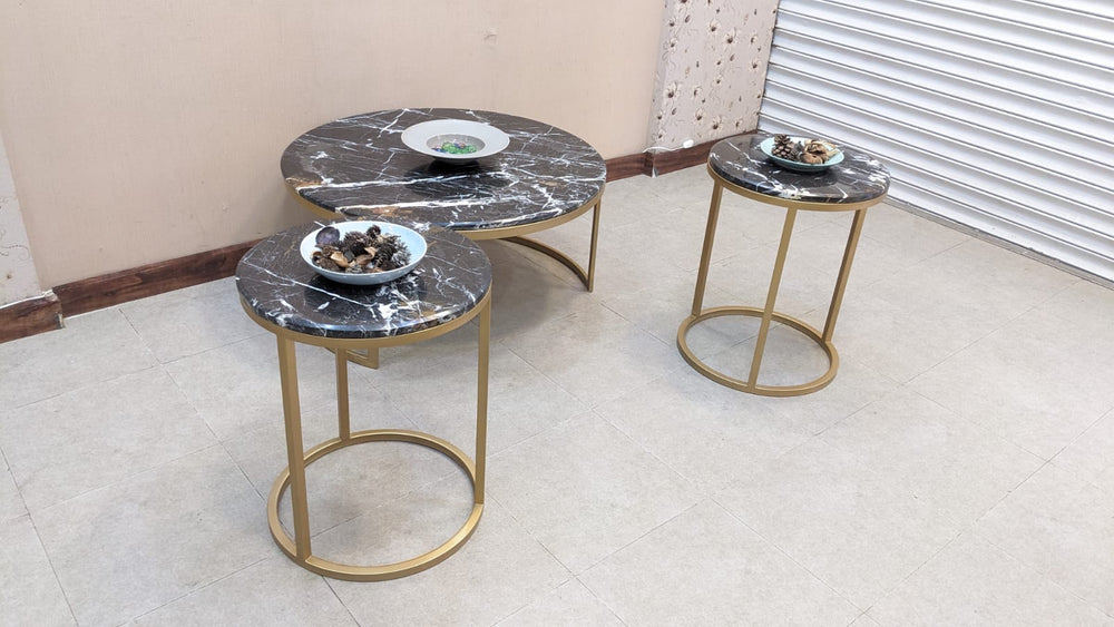 Featuring beautifull marble tops paired with a sleek metal base in gold finish, this set blends modern aesthetics with timeless charm. Perfect for creating a sophisticated focal point in your lounge.