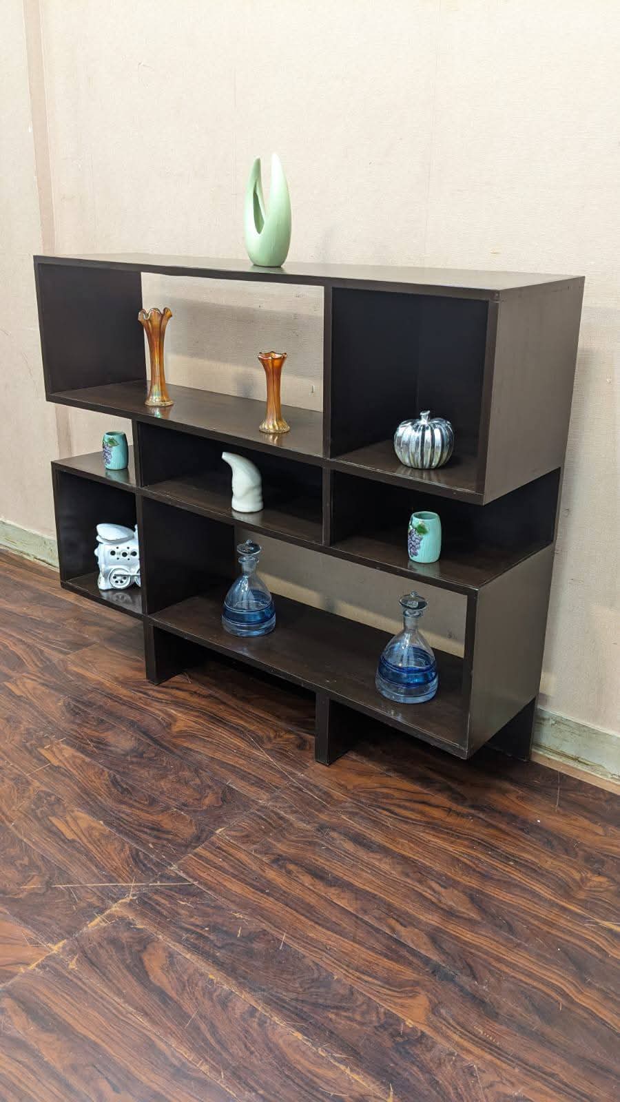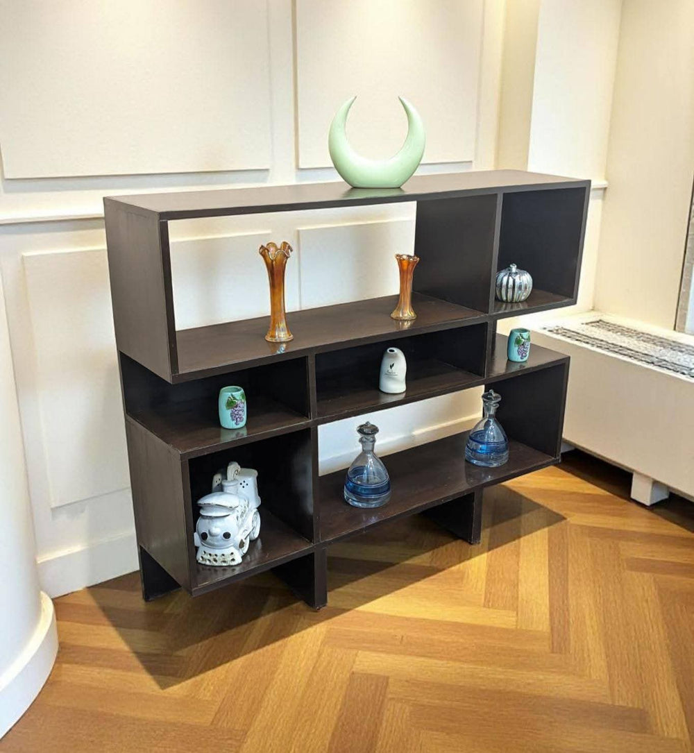 Upgrade your space with this sleek dark wood finish multipurpose rack – perfect for living rooms, bedrooms, or offices.