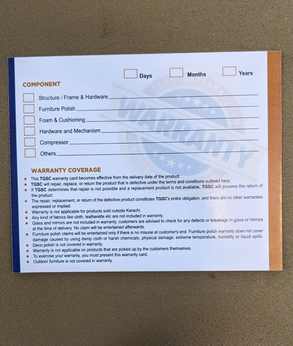 Enjoy 1-Year Structure & Foam Warranty – exclusively from TGSC (The Garage Sale Company)