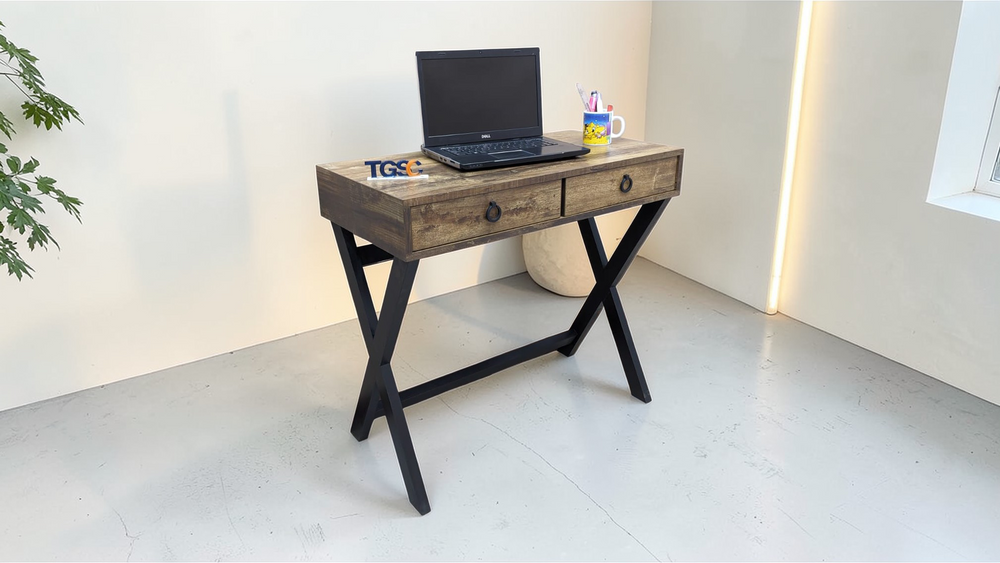 Sleek and stylish design featuring two smooth-sliding drawers for convenient storage. Crafted in durable lamination material with sturdy wooden X-legs for modern appeal.
