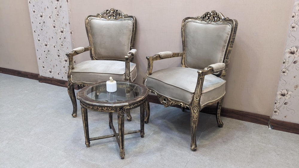 Add a touch of timeless luxury to your sitting area with this elegant coffee chair and table set, crafted to impress.