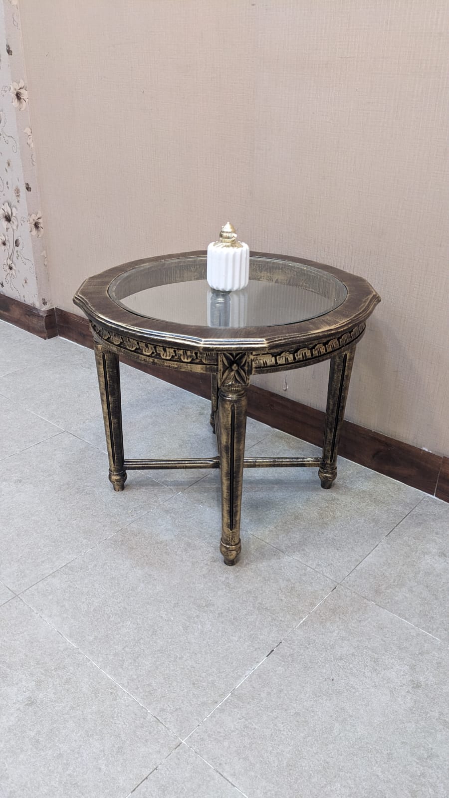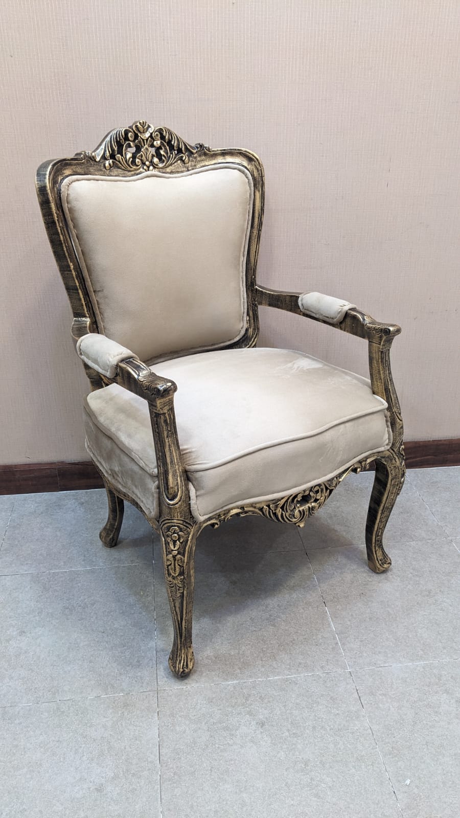 Exquisite antique gold deco finish with detailed carving