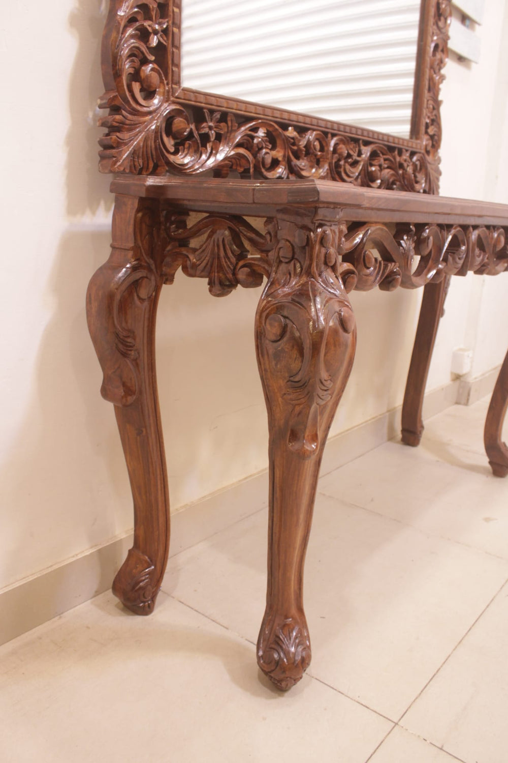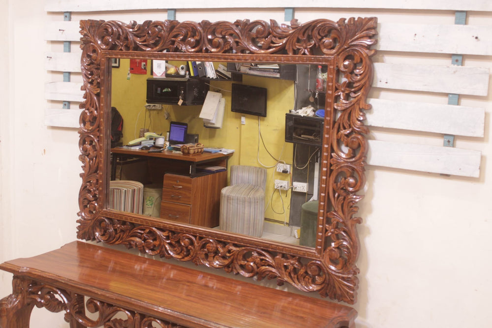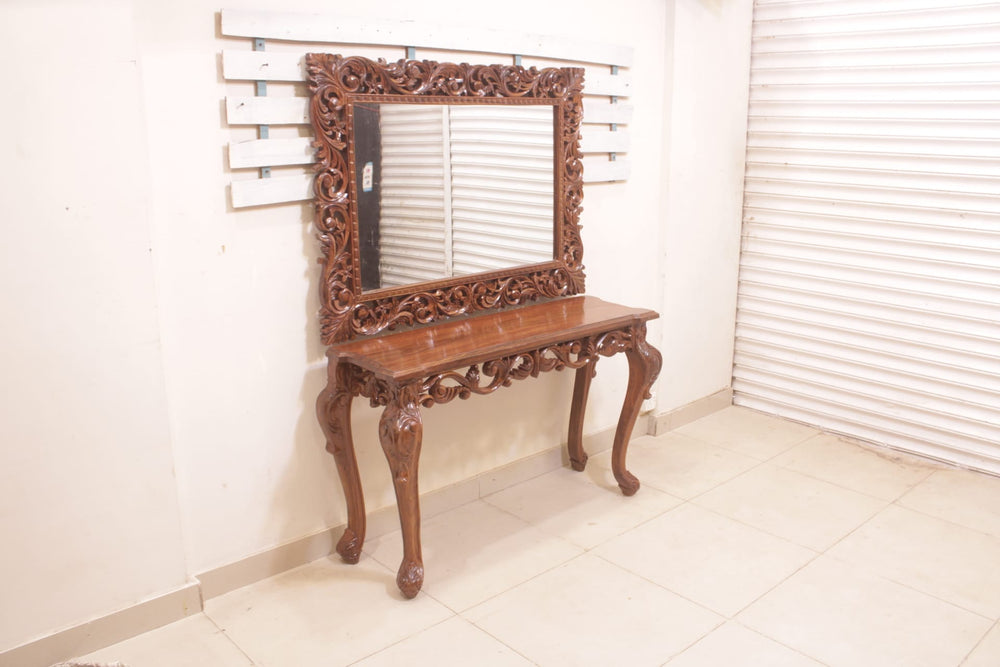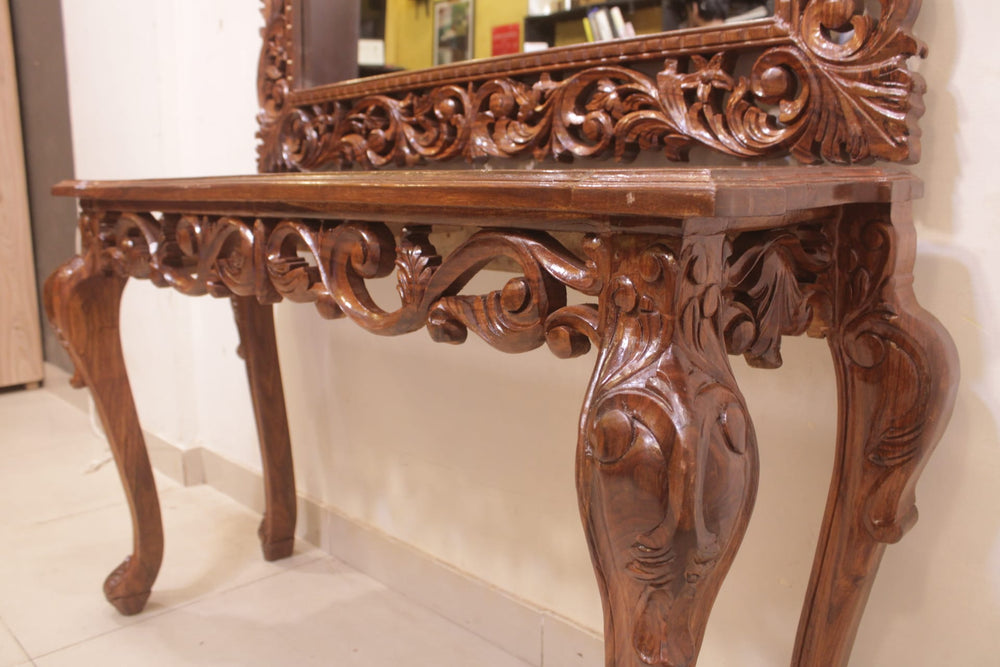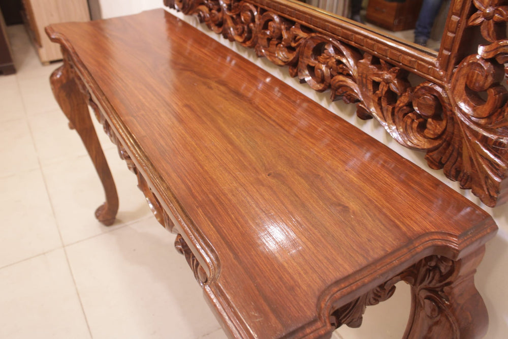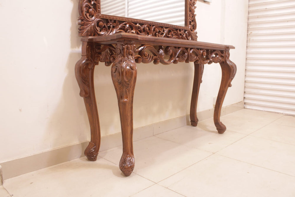 The Console Mirror Is The Main Decoration Item.In The Corridor Or At The Entrance Of Home. It Can Be Place In The Middle Of Home Or Any Other Specific Place.The Legs Are In Victorian Shape And The Center Is Full Of Craft.