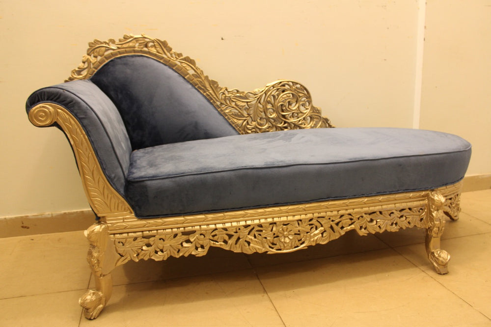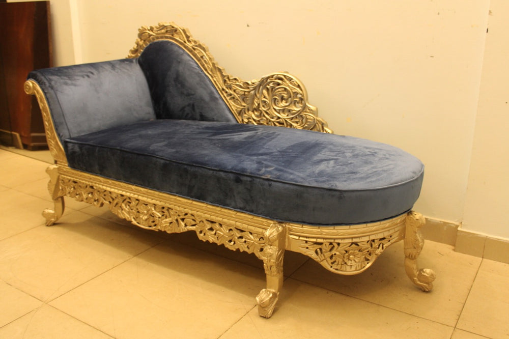 Tgsc Brand New Design absolutely gorgeous Divan in Blue and Gold Combination. It is made of pure sheesham wood with beautiful carving done on it.