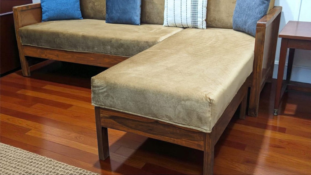 Experience comfort and elegance with this beautifully crafted solid Sheesham wood L-shape sofa, designed to complement any modern or traditional living room.