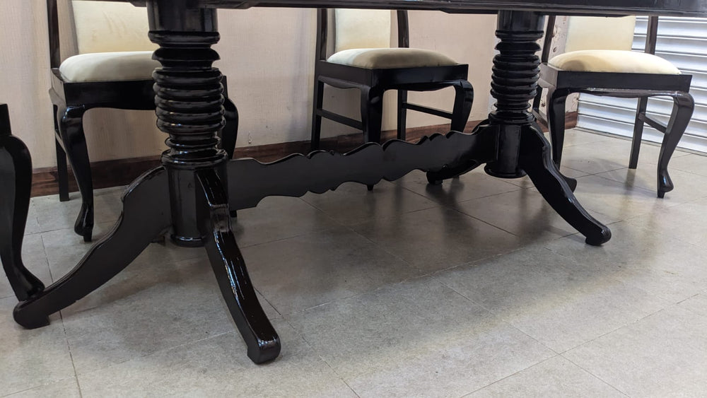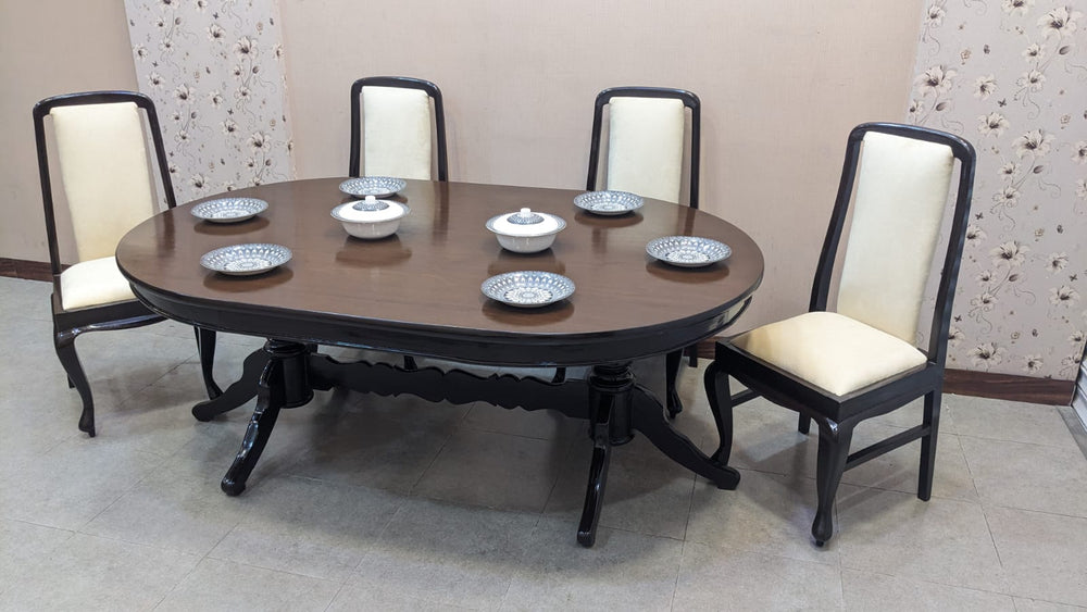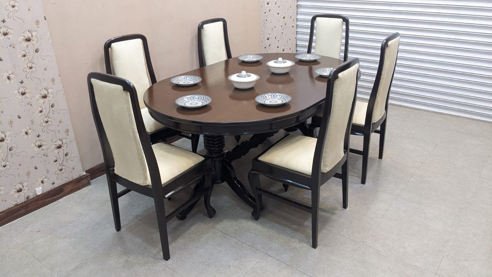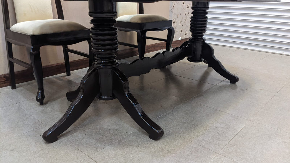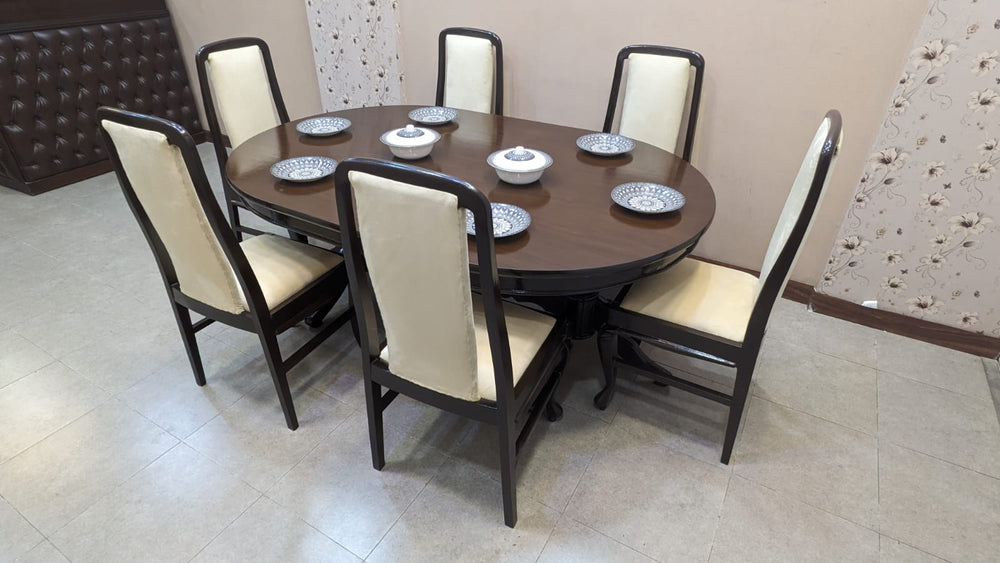 Upgrade your dining space with this elegant solid Sheesham wood 6 seater dining table, crafted to last for generations. Paired with freshly upholstered chairs in premium-quality velvet fabric, this set offers the perfect balance of luxury, comfort, and durability.