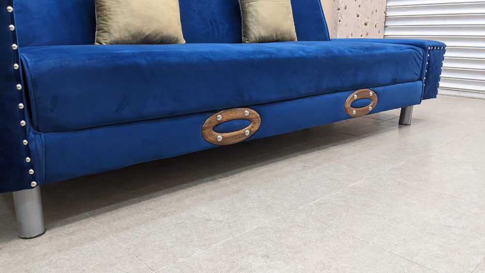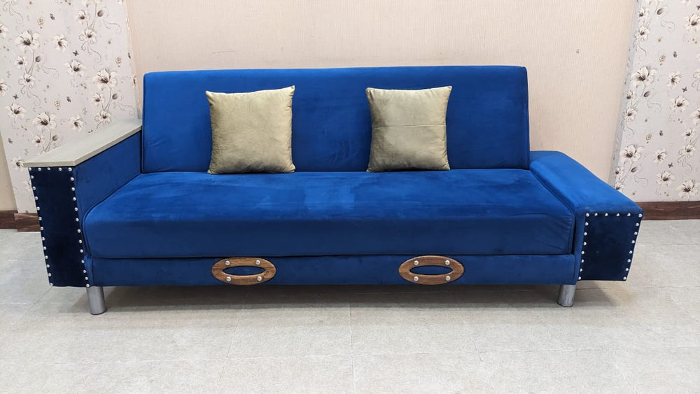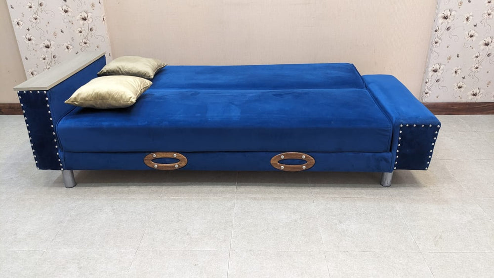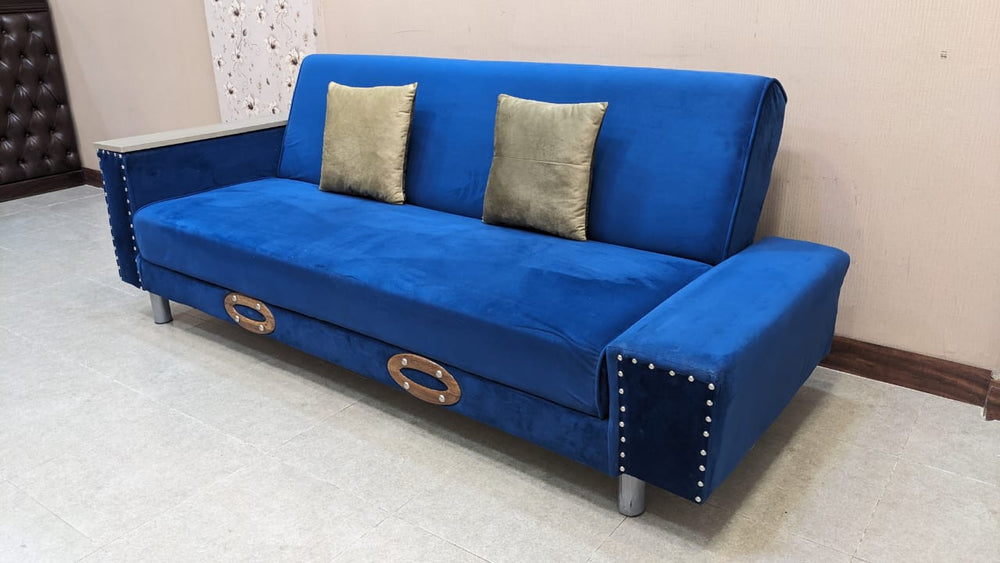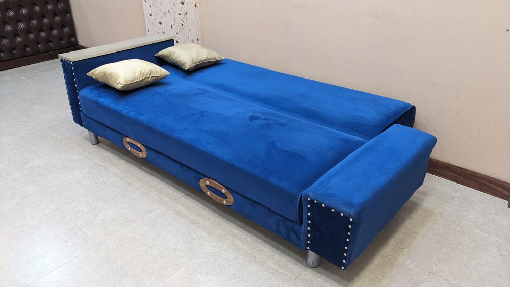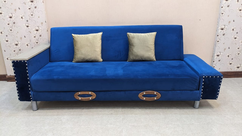 Stylish and practical sofa cum bed in a rich blue finish, perfect for everyday lounging and overnight guests.