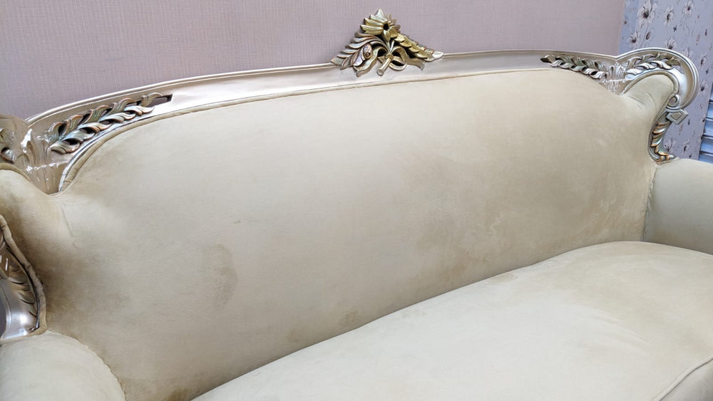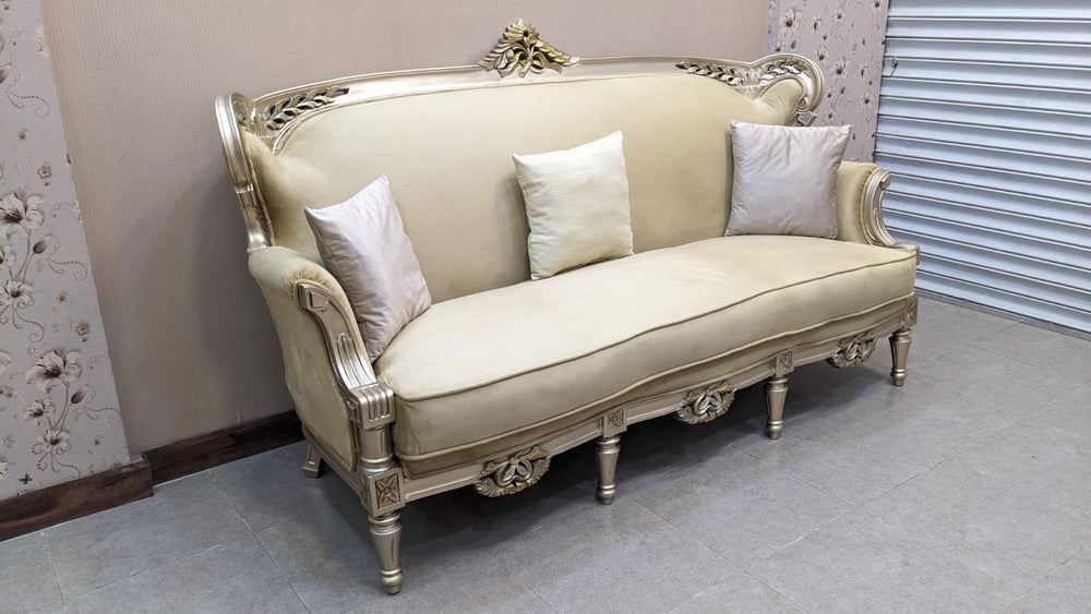 Bring timeless elegance into your living space with this authentic Chinioti-style 3 seater sofa, crafted from solid Sheesham wood and paired with brand new velvet-upholstered cushions. A perfect blend of heritage craftsmanship and fresh comfort.