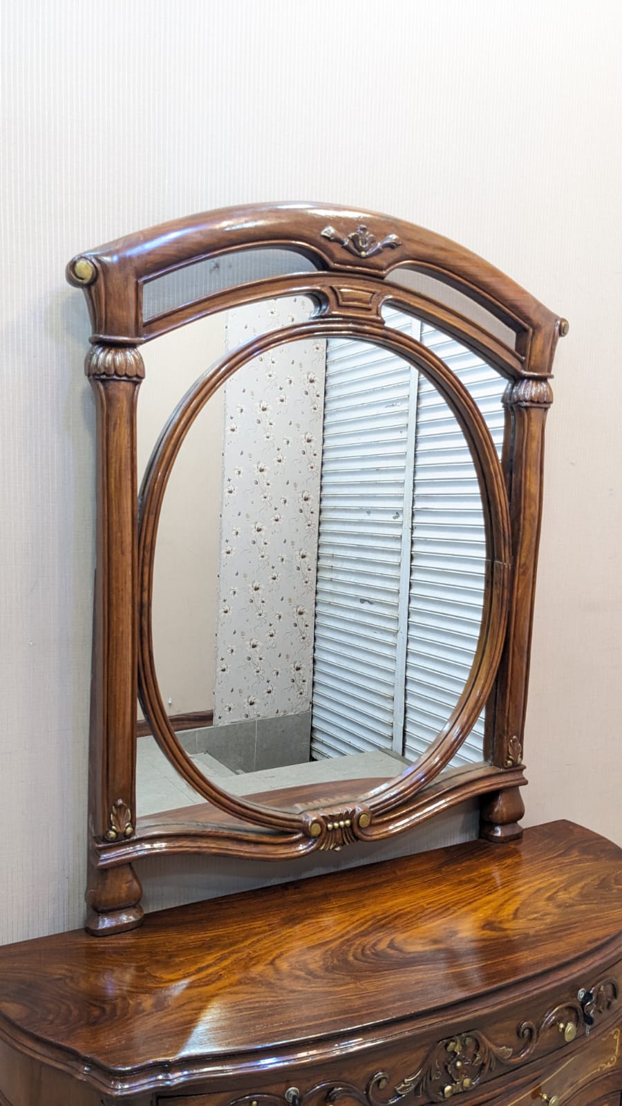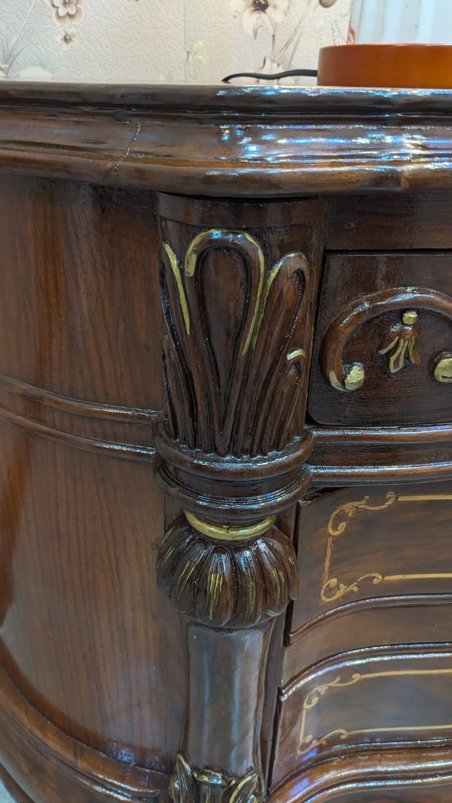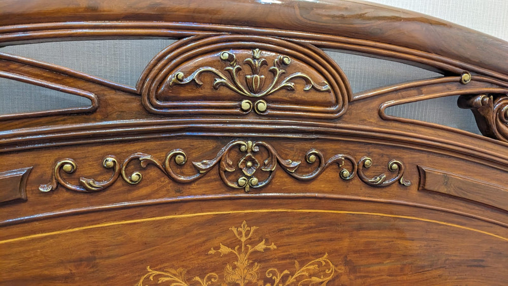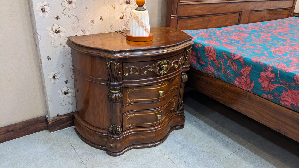 The warm tone and detailed craftsmanship give this set a royal, vintage charm that instantly elevates any bedroom space.