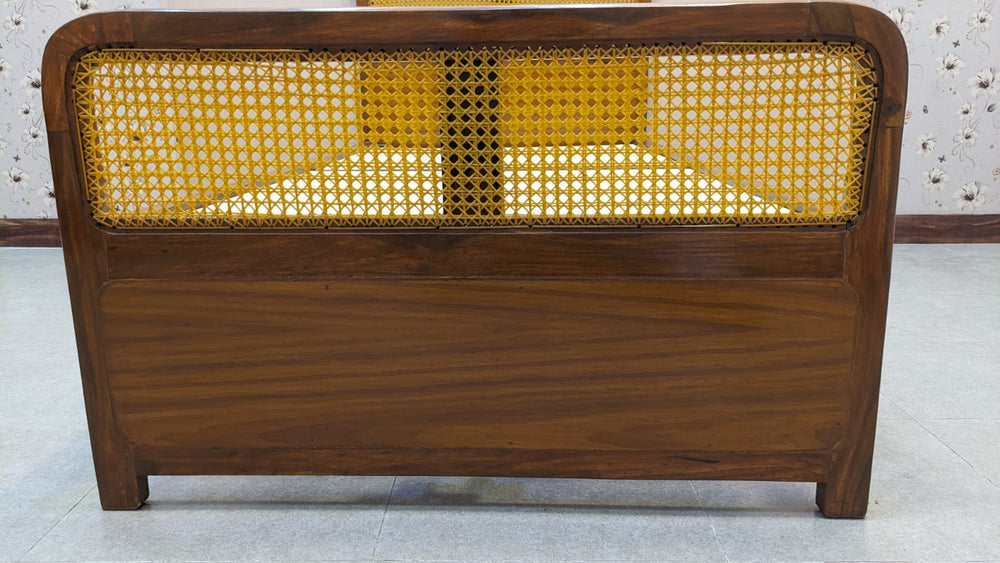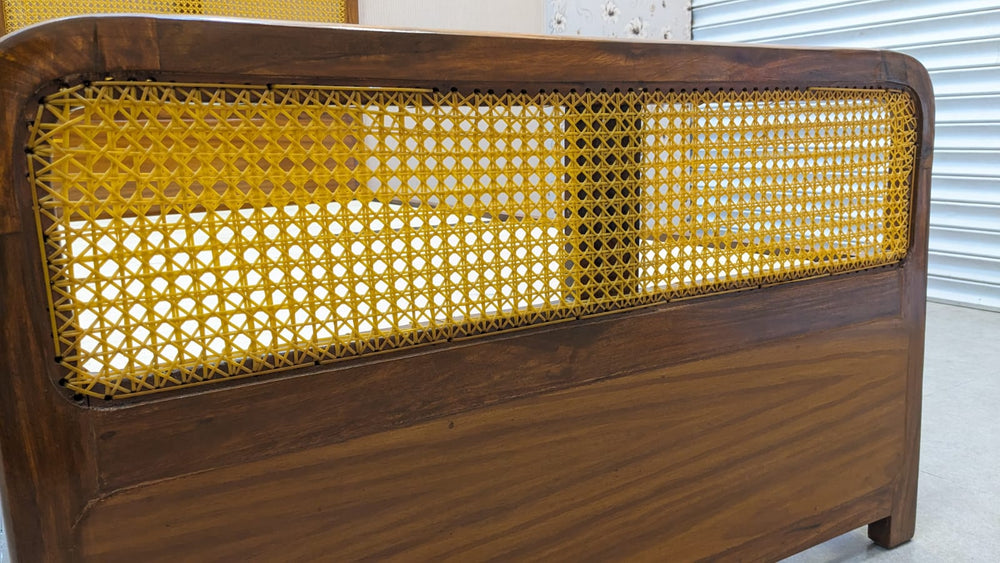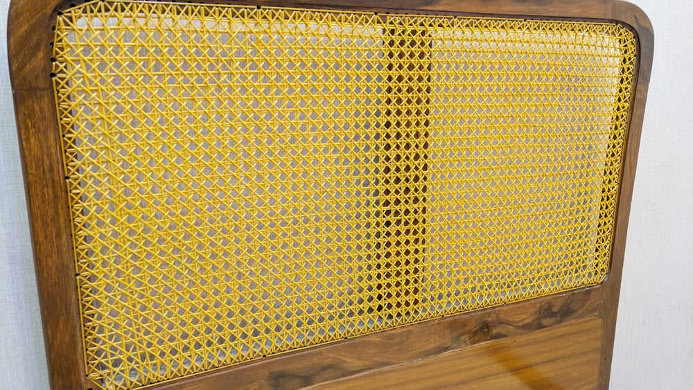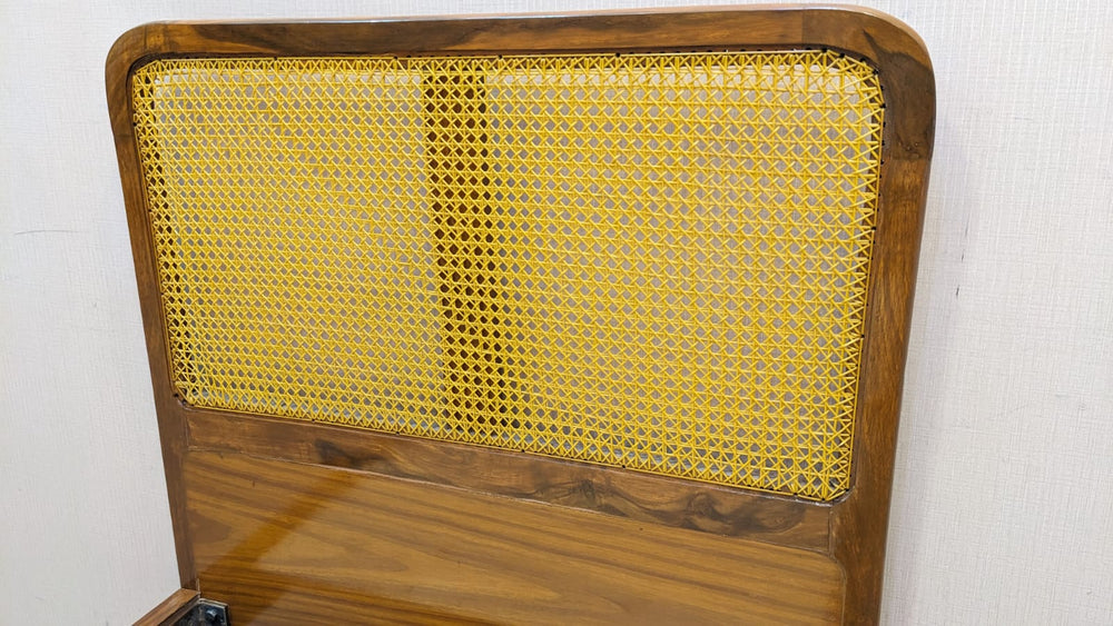 Add warmth and character to your bedroom with this beautifully crafted solid sheesham wood single bed, featuring handwoven wicker (cane) detailing on both the headboard and footboard. A perfect blend of natural textures and timeless design.