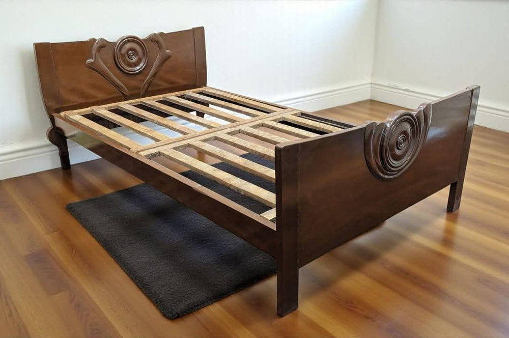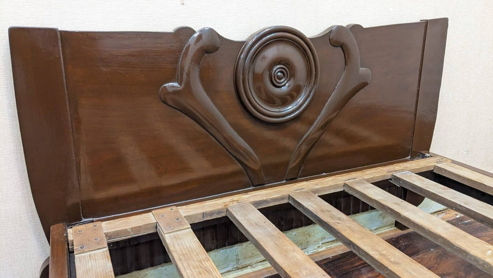 Add timeless elegance to your space with this solid Sheesham wood single bed, featuring beautiful hand-carved floral detailing on both headboard and footboard. Built for durability and long life, this preloved piece combines classic craftsmanship with a sleek dark polish finish — perfect for guest rooms, hostels, or compact bedrooms.