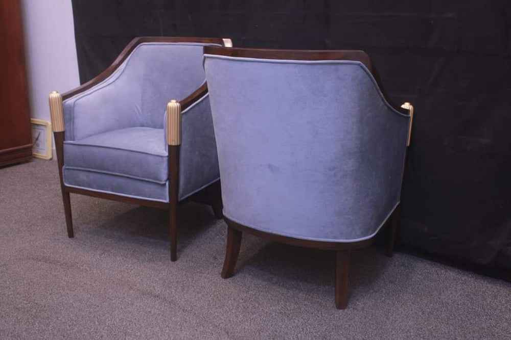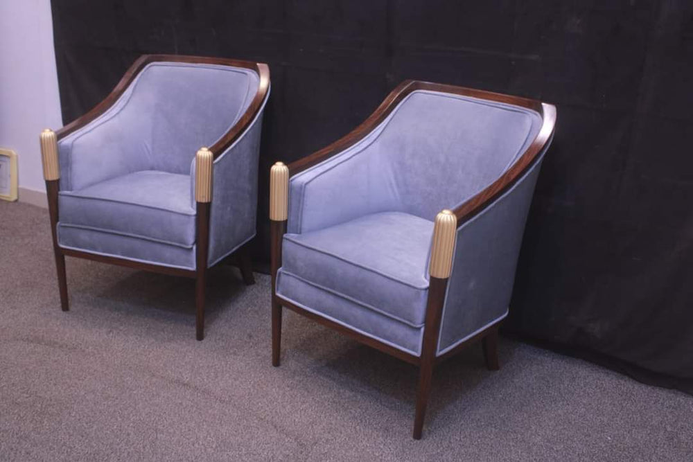 Beautifully designed sheesham wood accent chairs with 10 year warranty master molty flex foam and Premium Velvet Fabric.