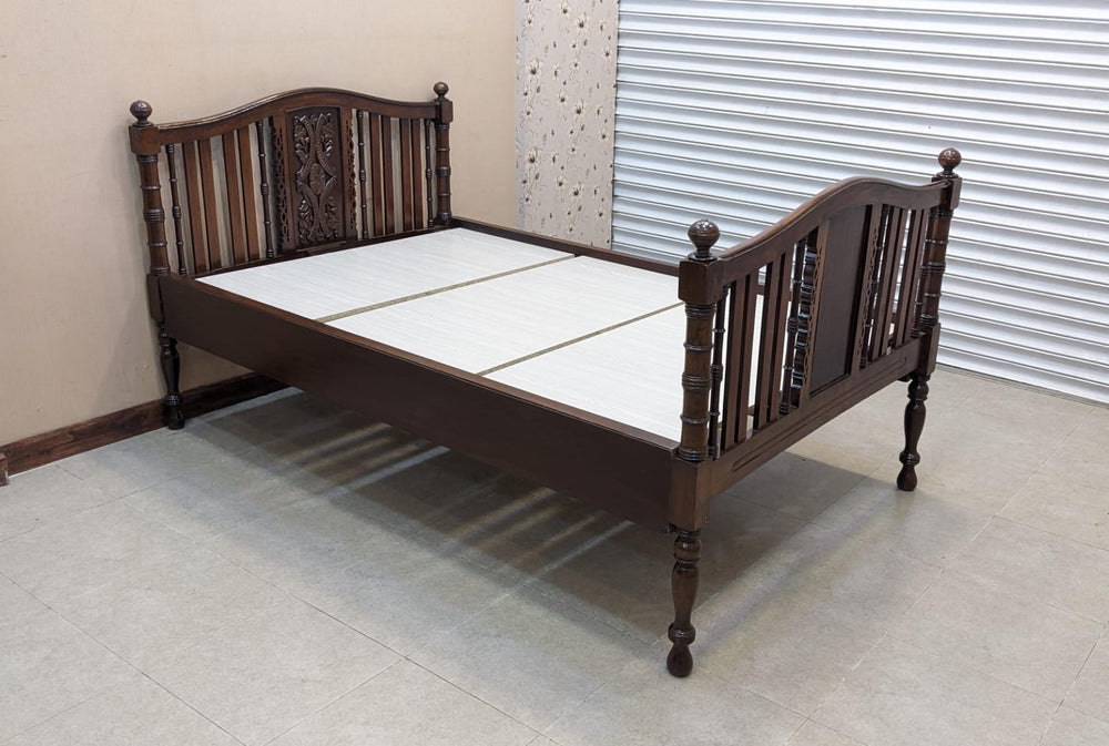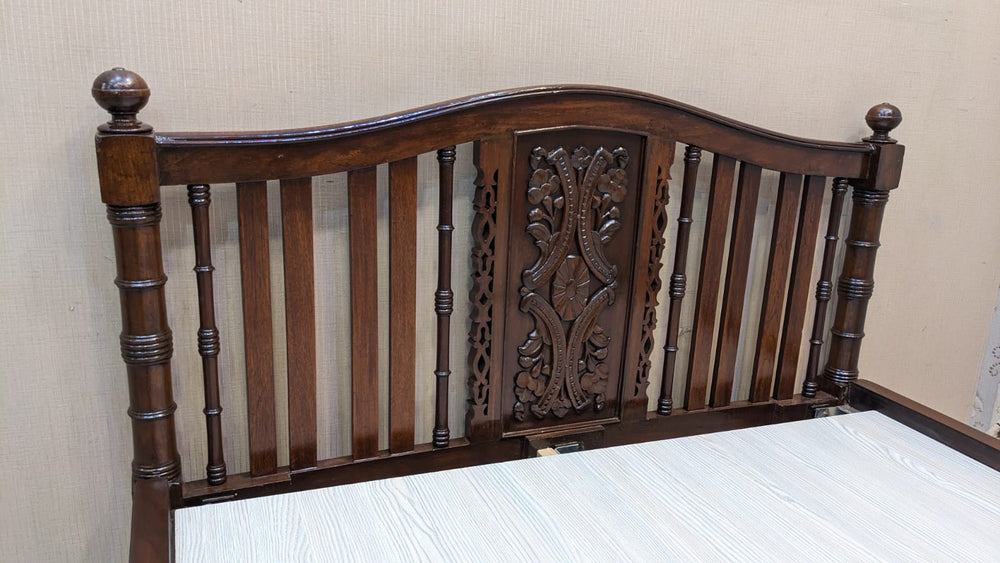Beautifully crafted in Teak & Sheesham Wood, this elegant twin size bed features stunning hand-carved detailing on both headboard and footboard — giving it a rich, royal vintage look.